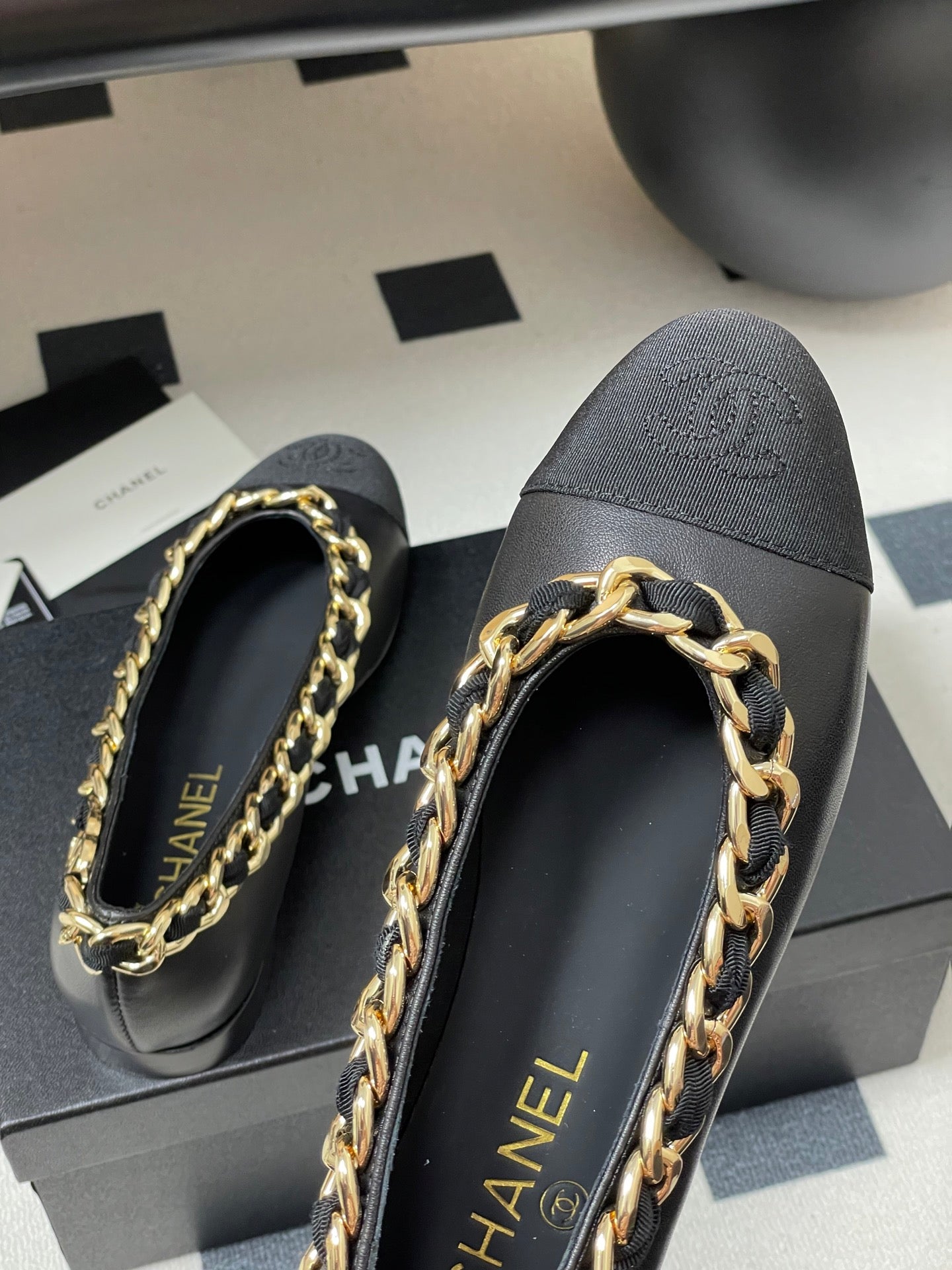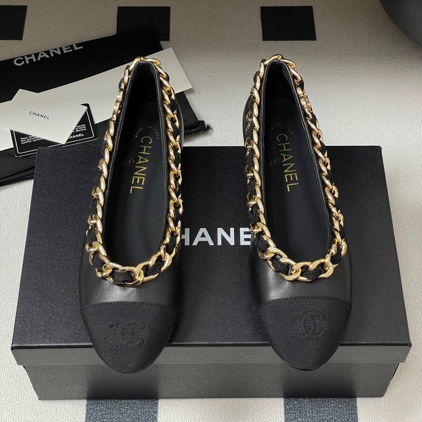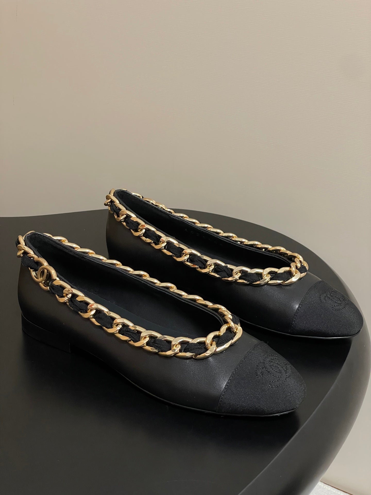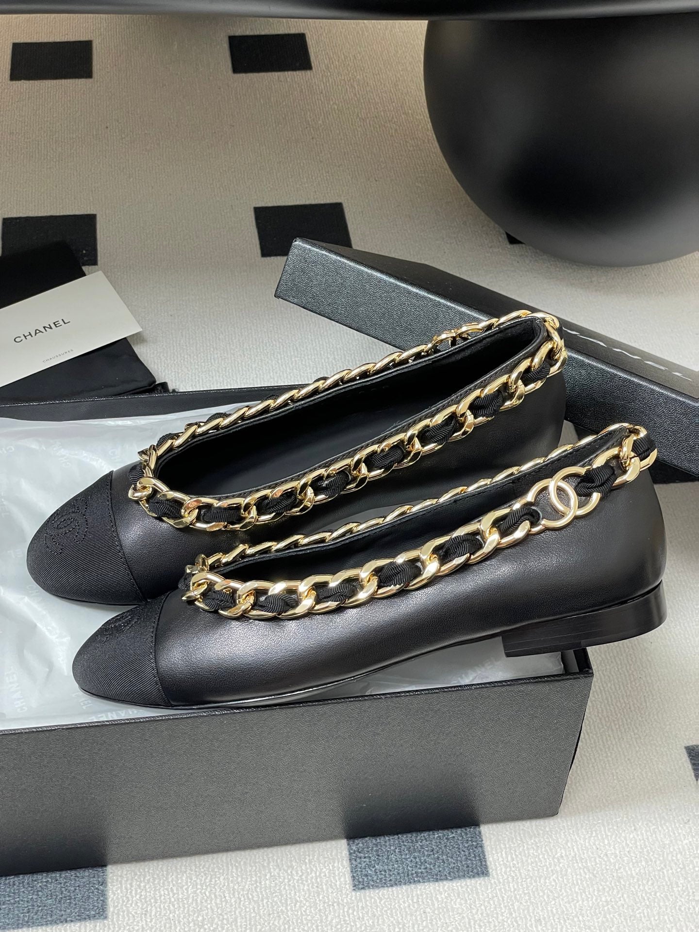 Chanel 25A Ballet Flats Big Chain Double C Black Sheepskin 393820