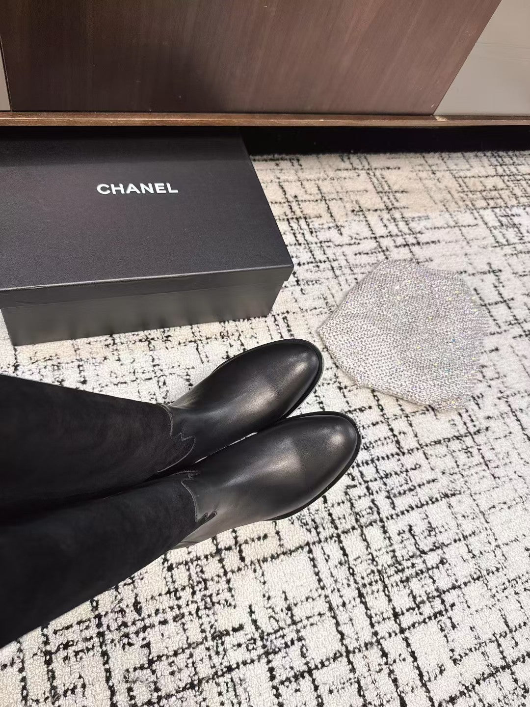 Chanel 25A Winter New Thigh Boots Black Cowhide Mix Suede 393520