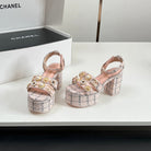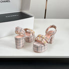 Chanel 25P High-heeled Sandals Pink Tweed Leather 175334