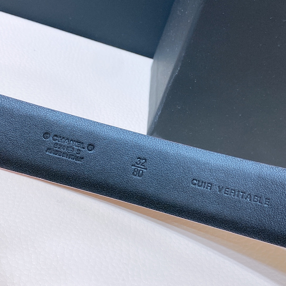 CHANEL BELT 3CM IN DODGER BLUE AND BLACK LAMBSKIN WITH CRYSTAL GOLD HARDWARE