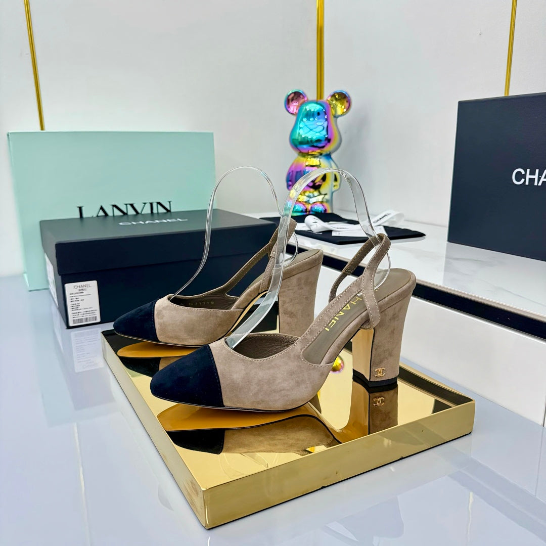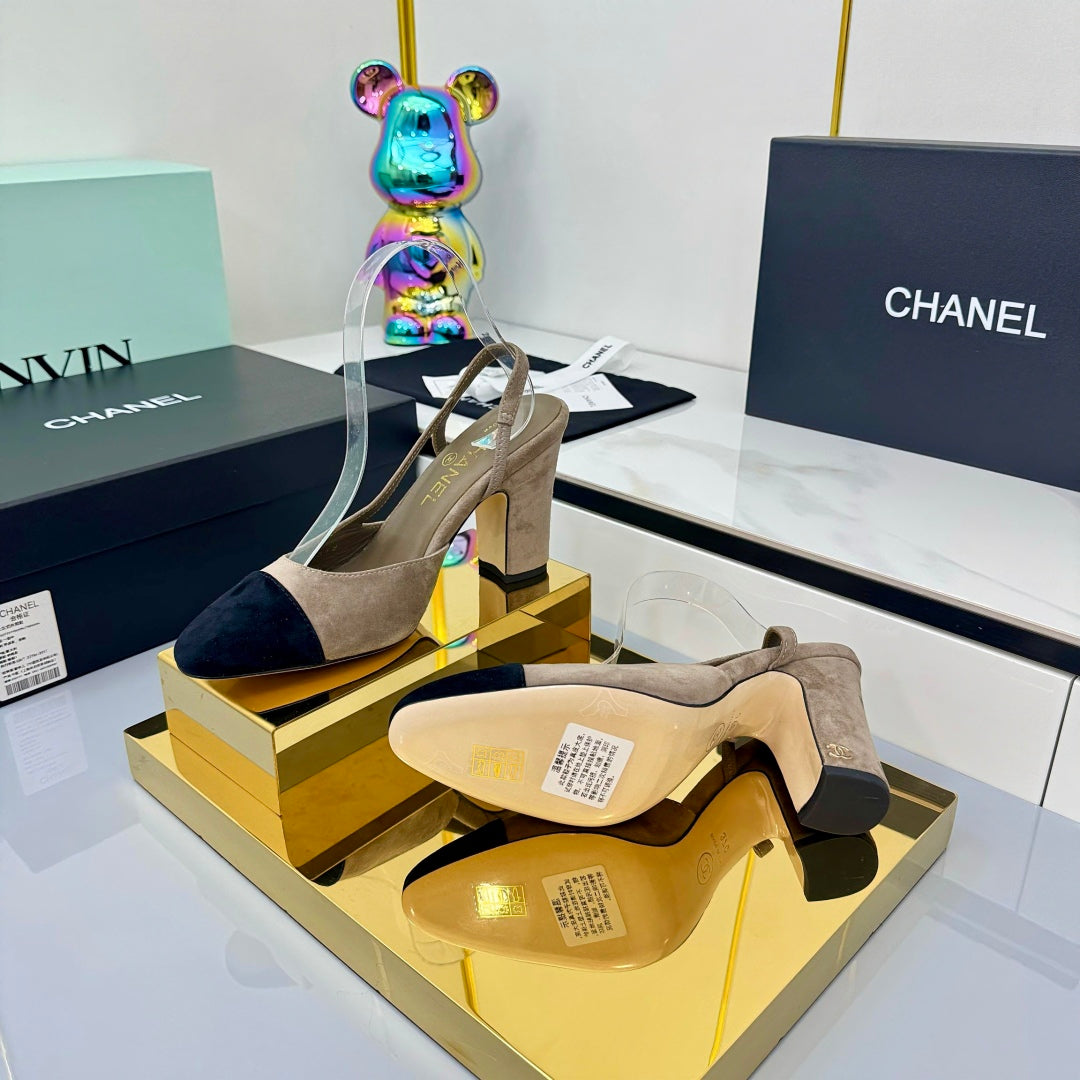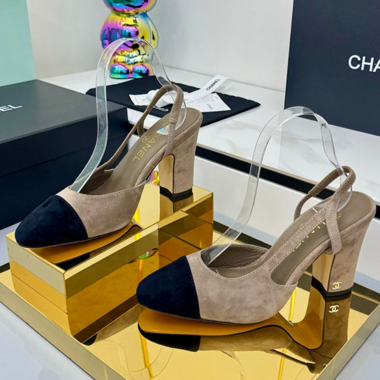 Chanel Slingback 90mm Neutral Beige Black Suede 469673
