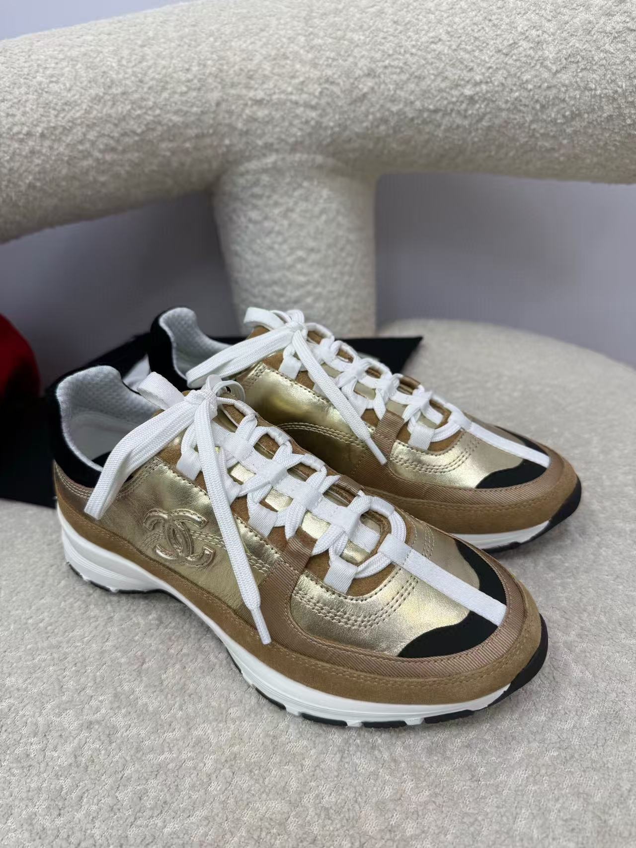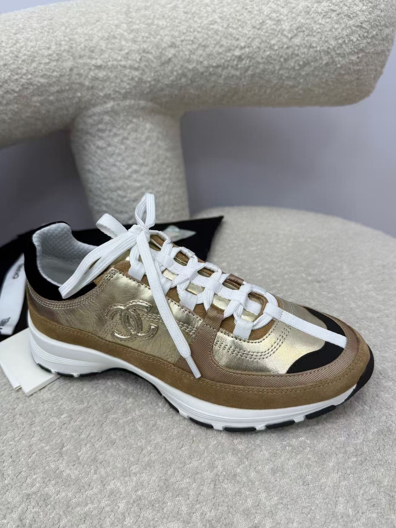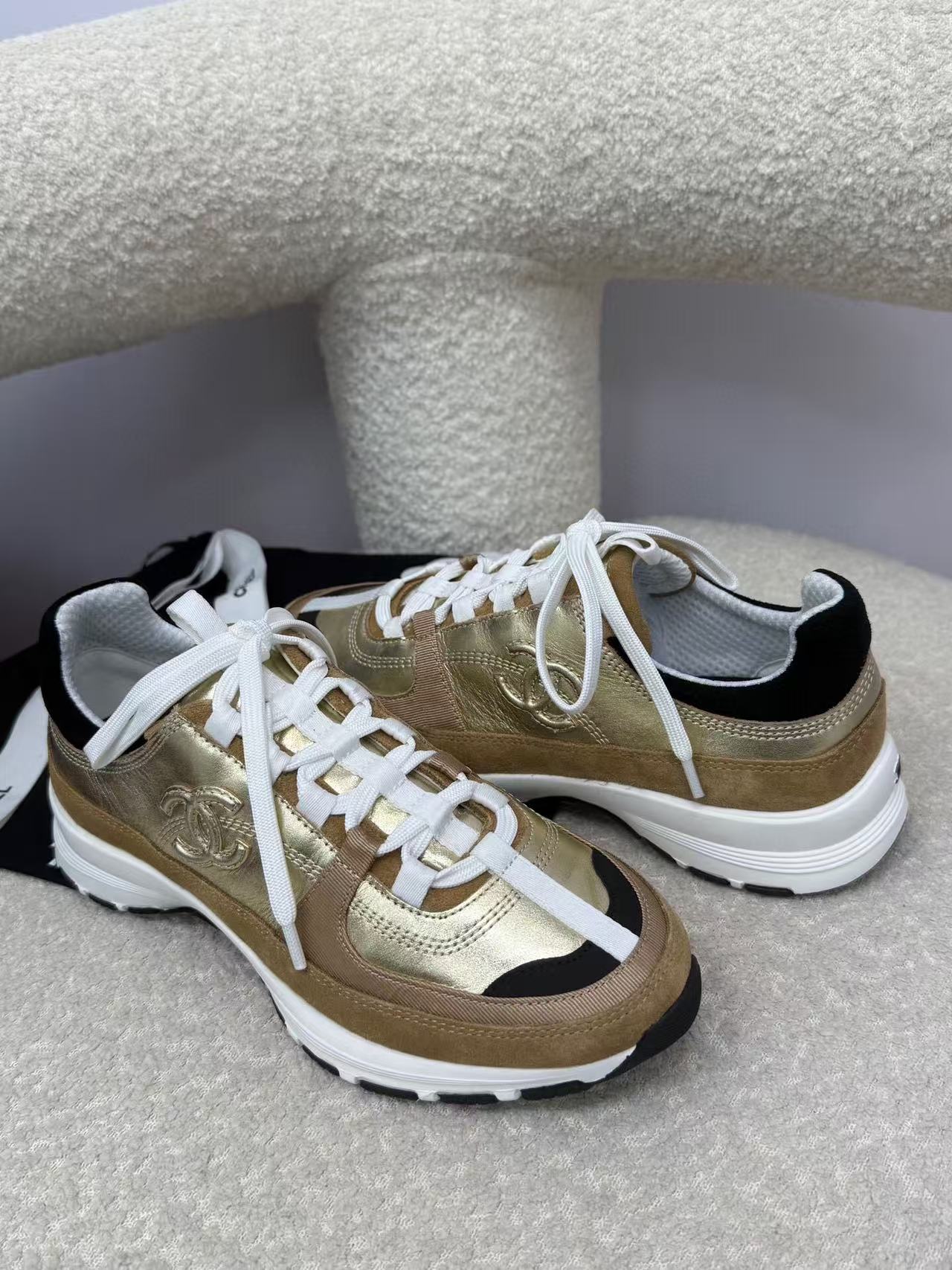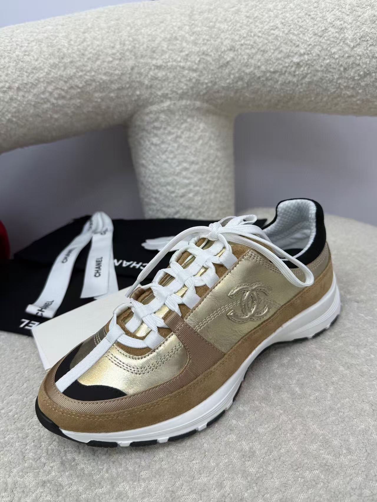 Chanel Sneaker Gold Brown Suede Leather