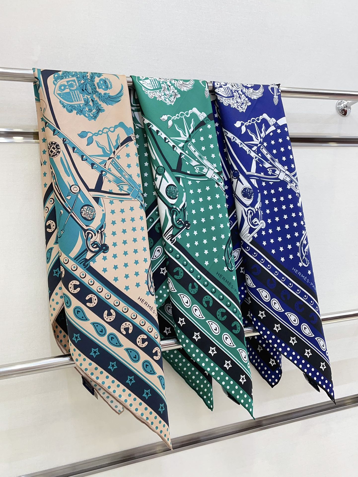 Cheval Punk Bandana Scarf 90 CM In Beige Mix Black Deep Green Silk Twill 309211