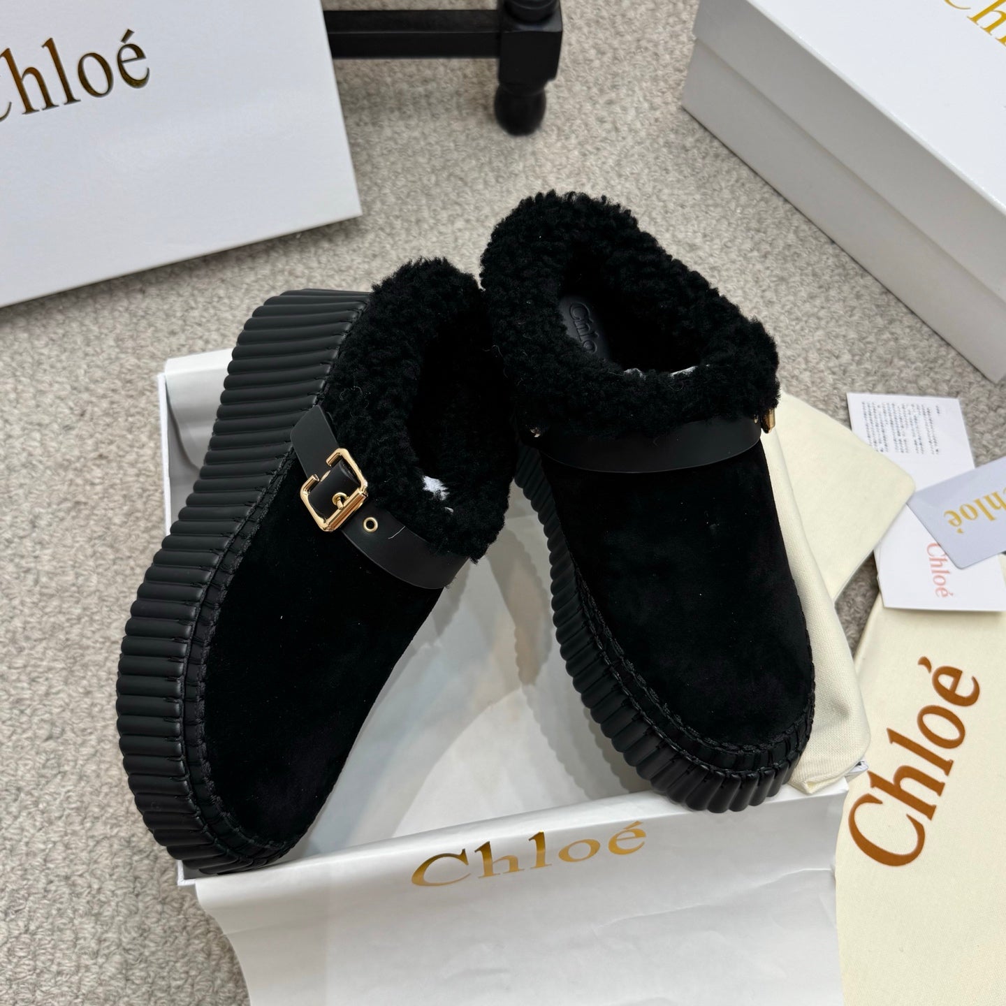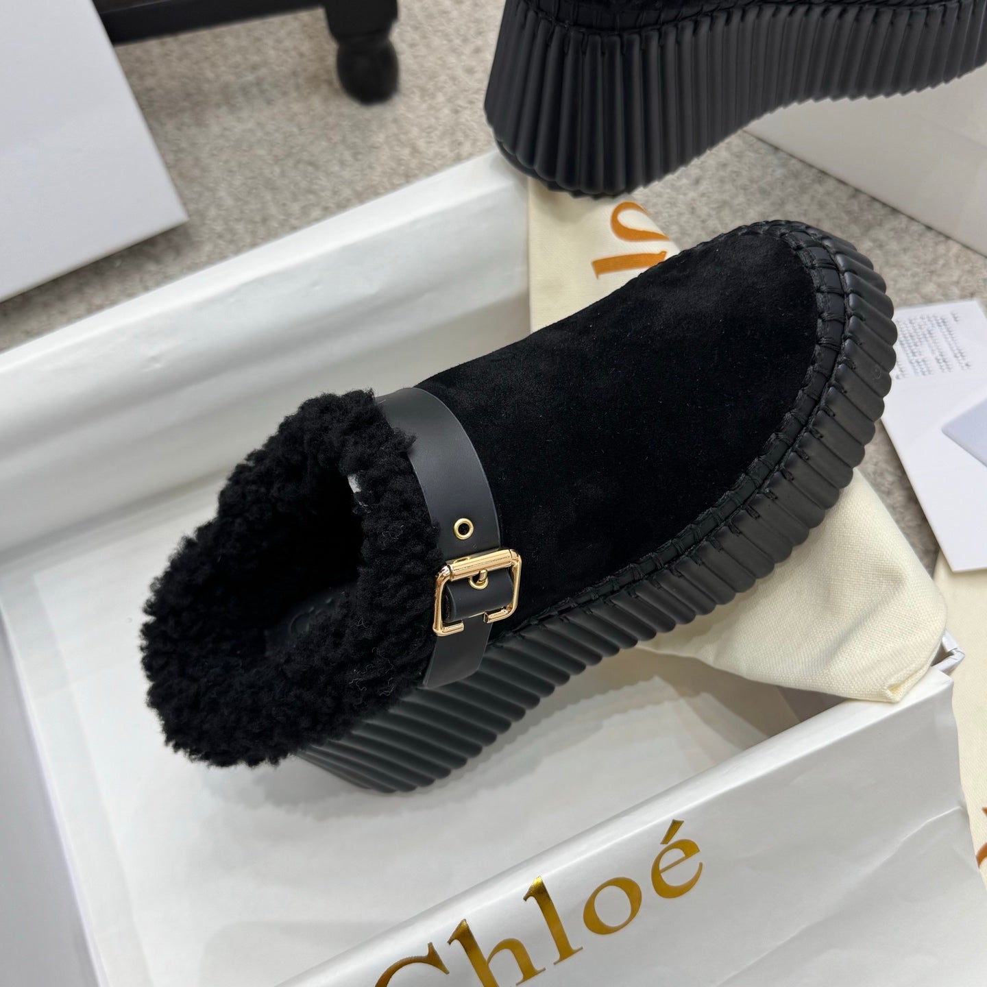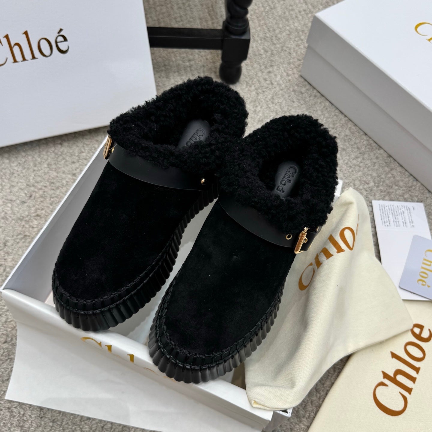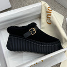 Chloe Nama Shearling-Lined Mule Black Suede 523135