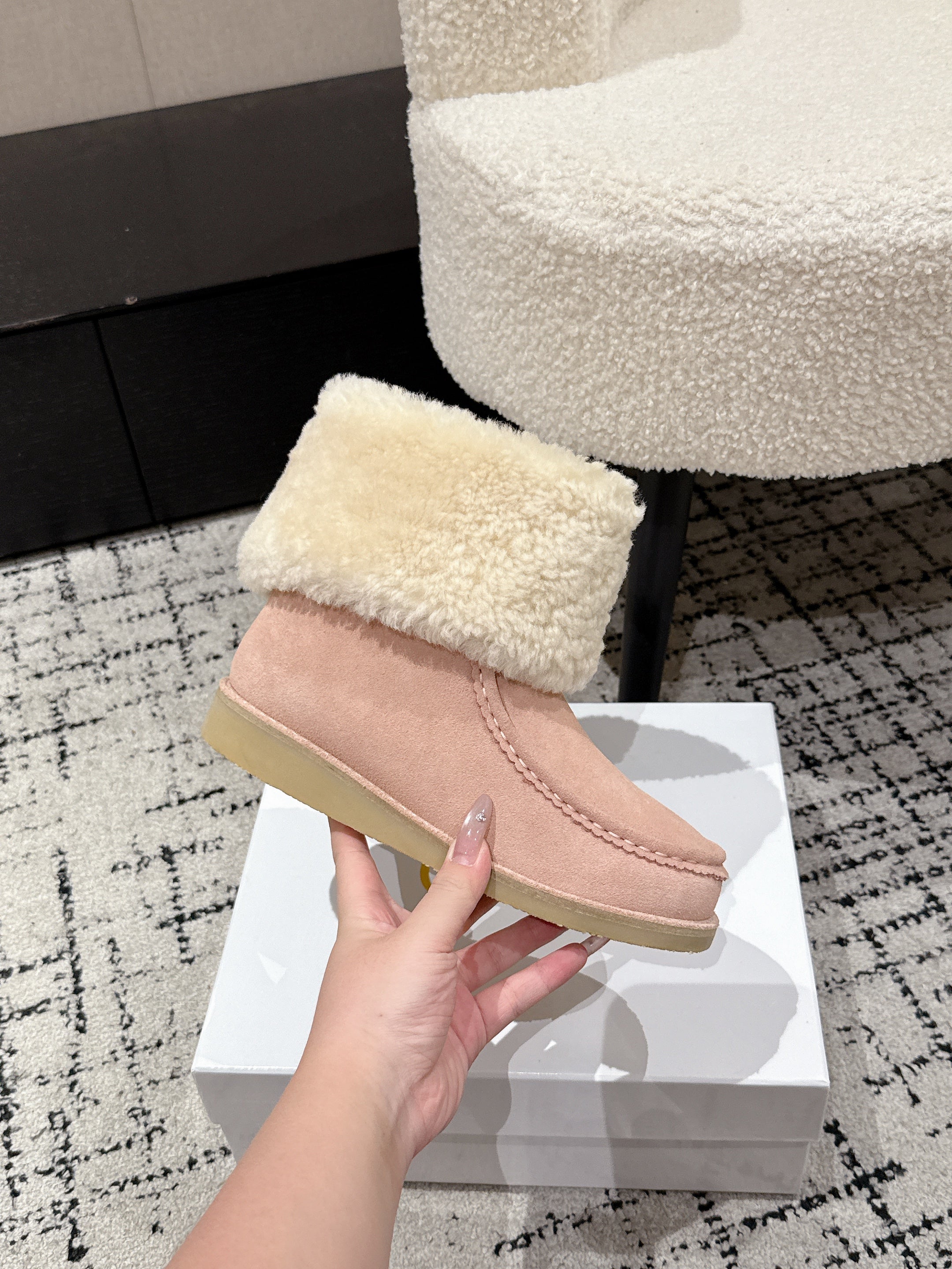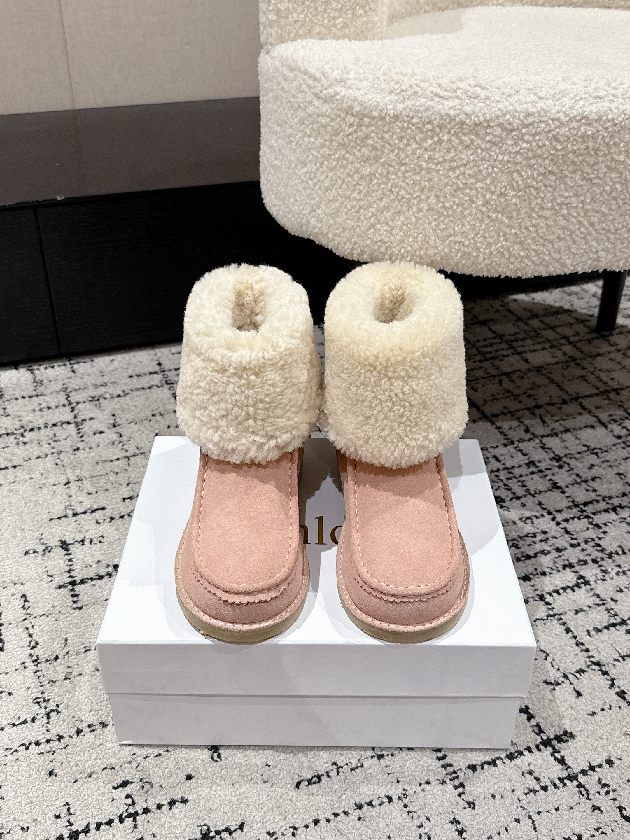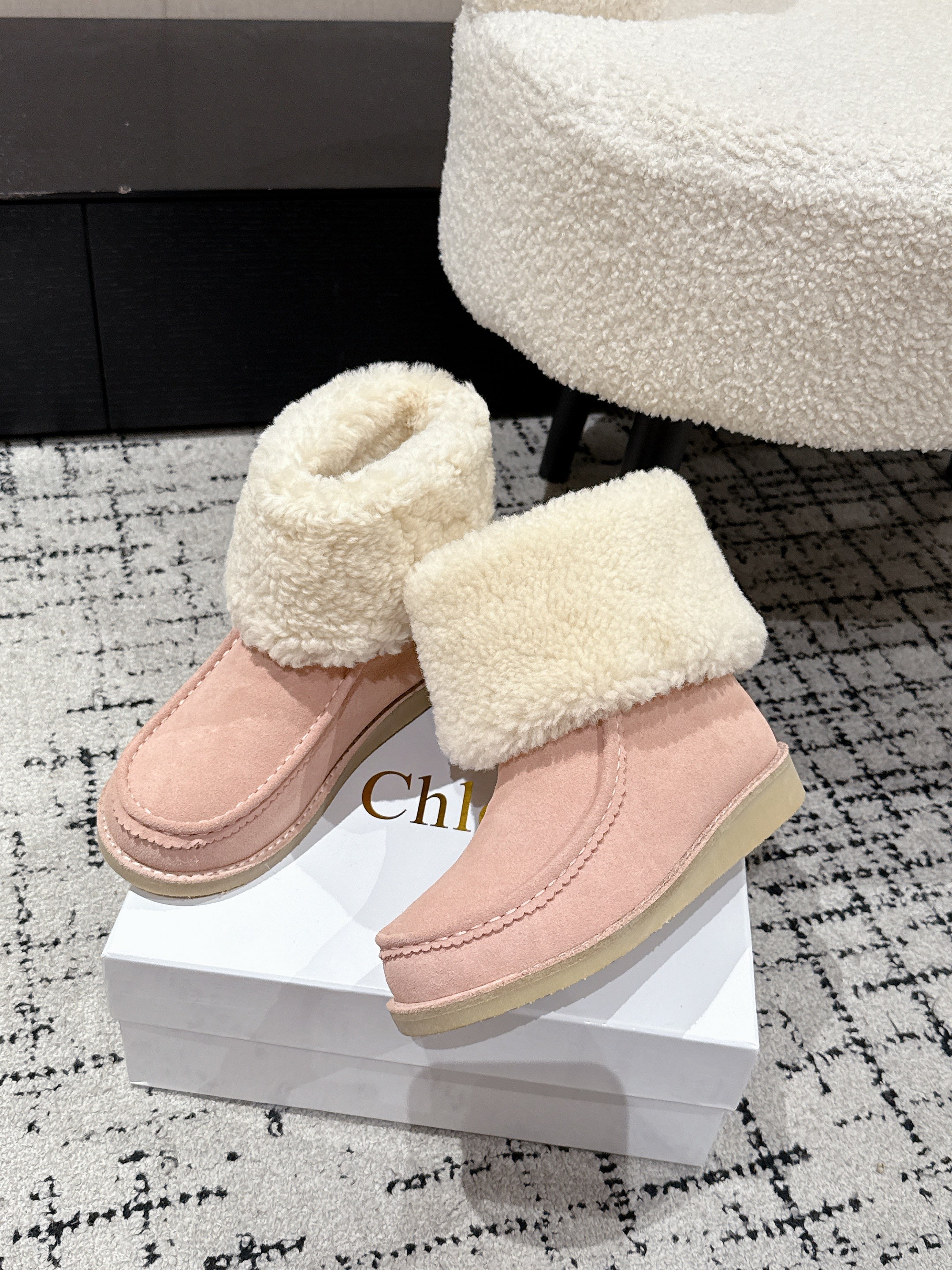 Chloe Snow Boots Light Pink Suede Wool 514333