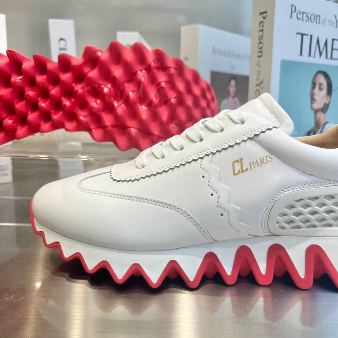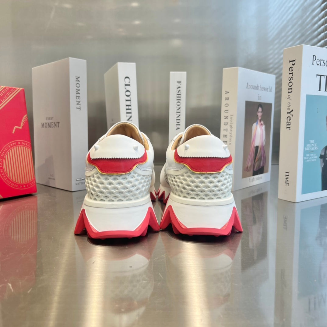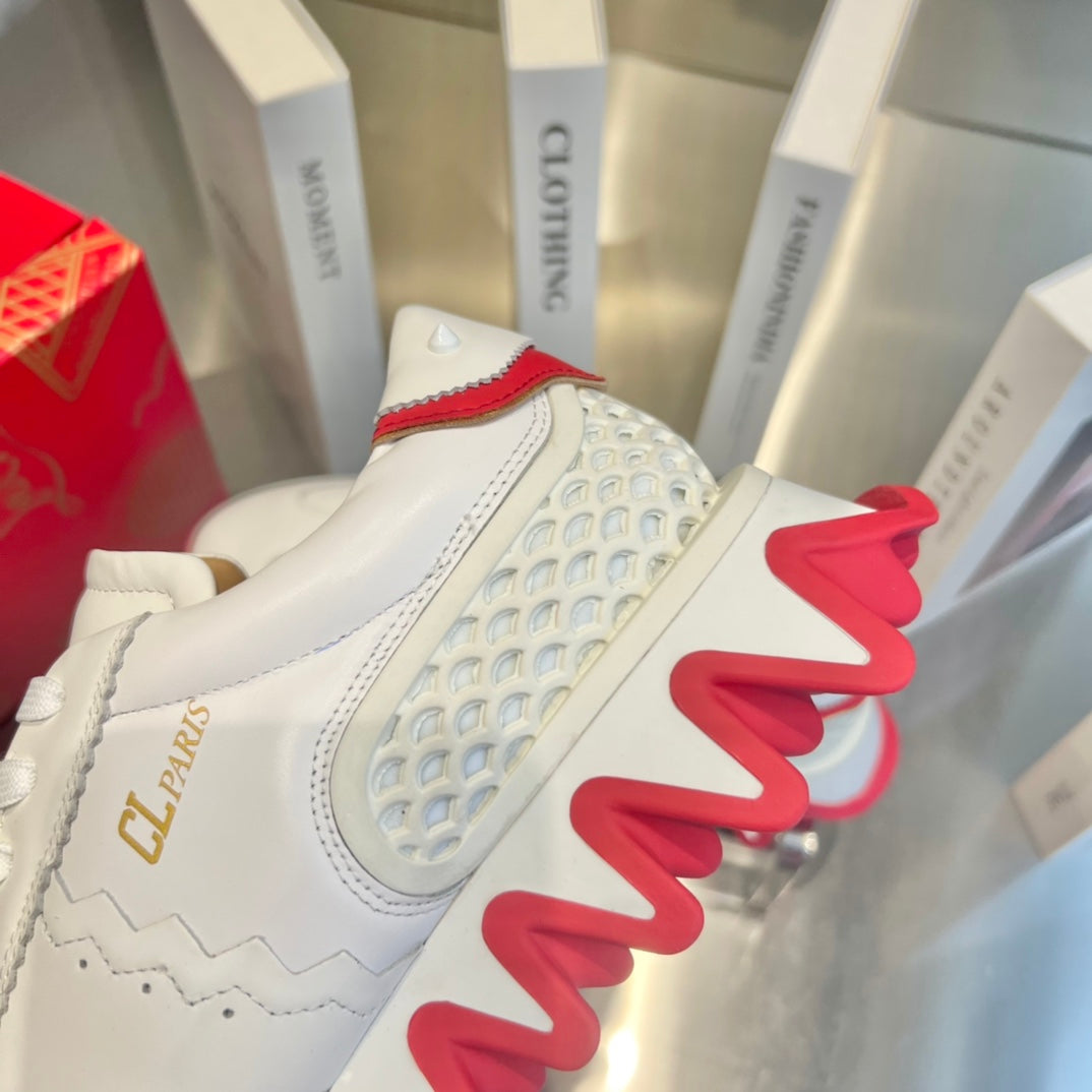 Christian Louboutin Loubishark Sneakers White Red Cowhide