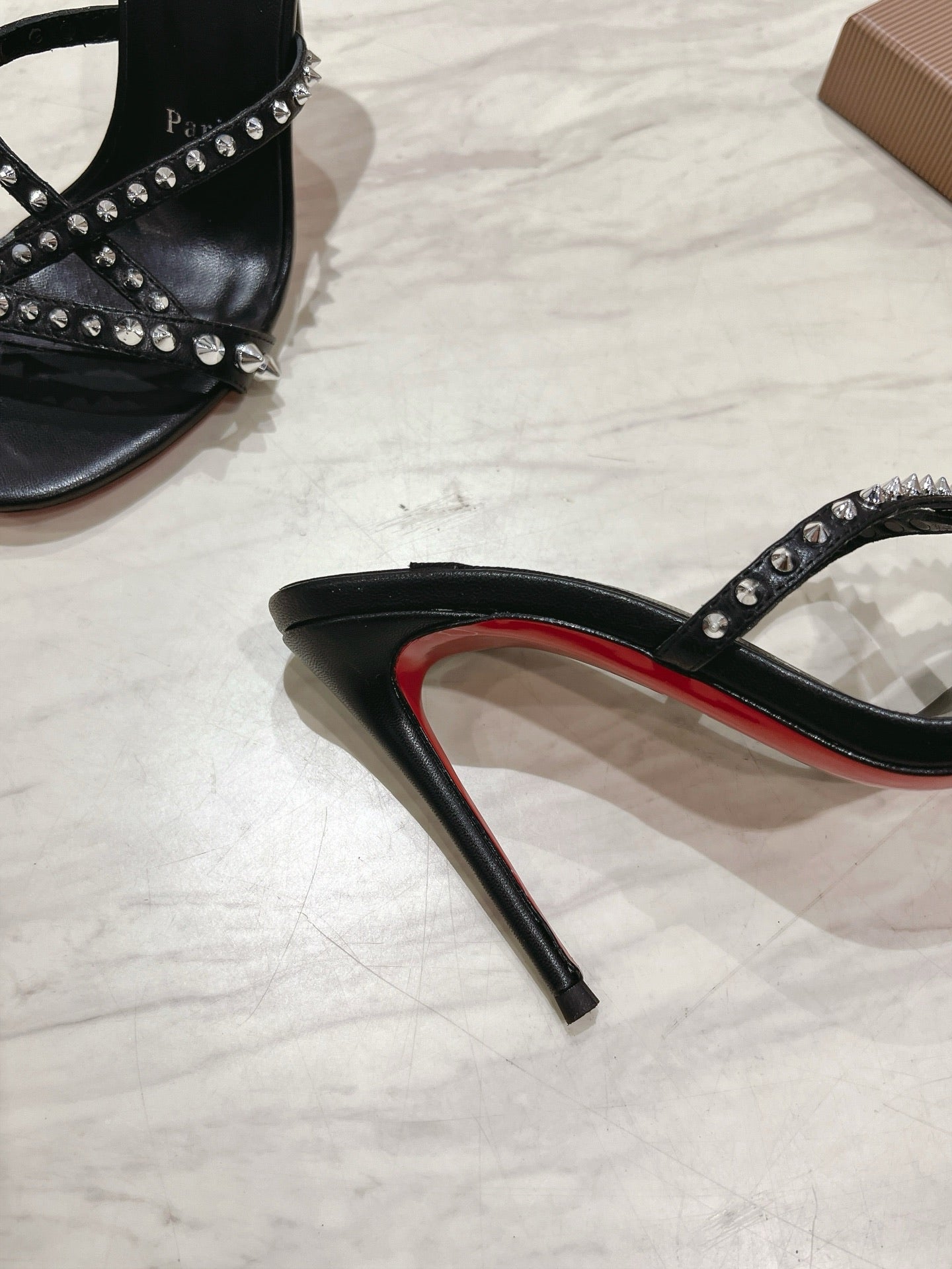 CL 25 Cross-Strap Slippers Black Gloss Calf Patent Leather Rivets 314925
