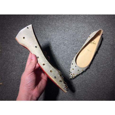 CL Degraspike Ballet Flats Glitter Fabric Silver