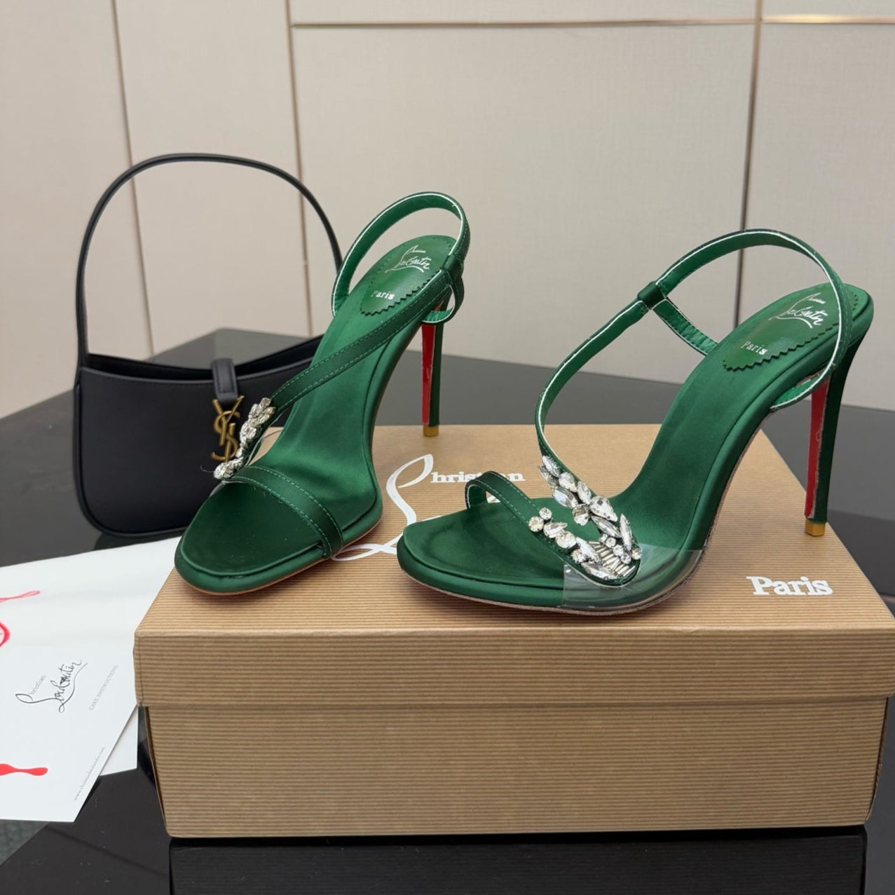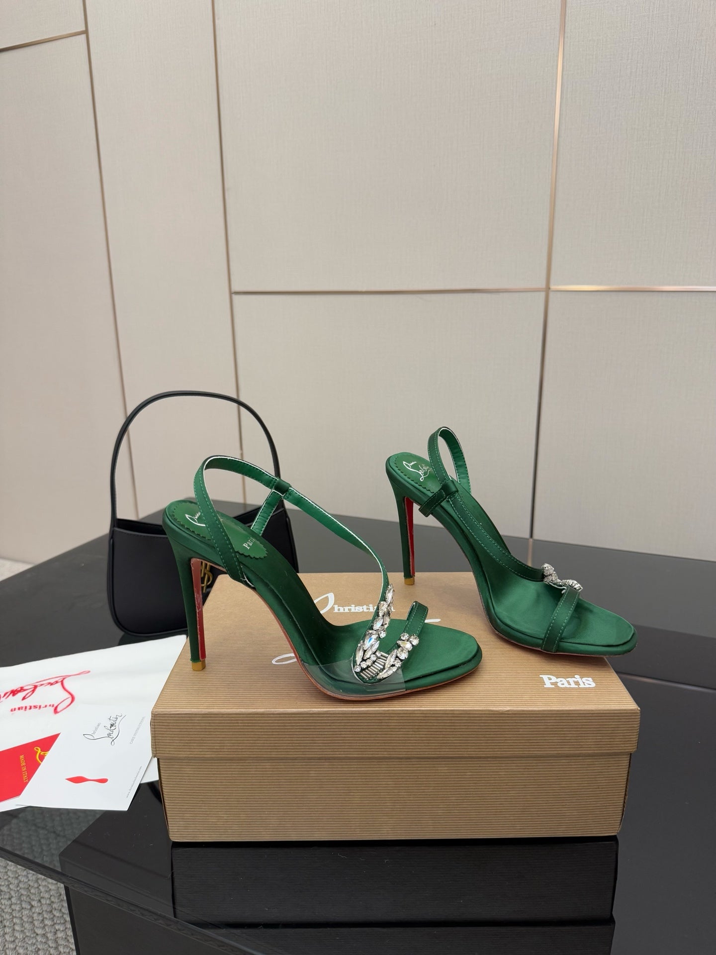 CL Diamond Sandals 10.5cm Green Silk 299881