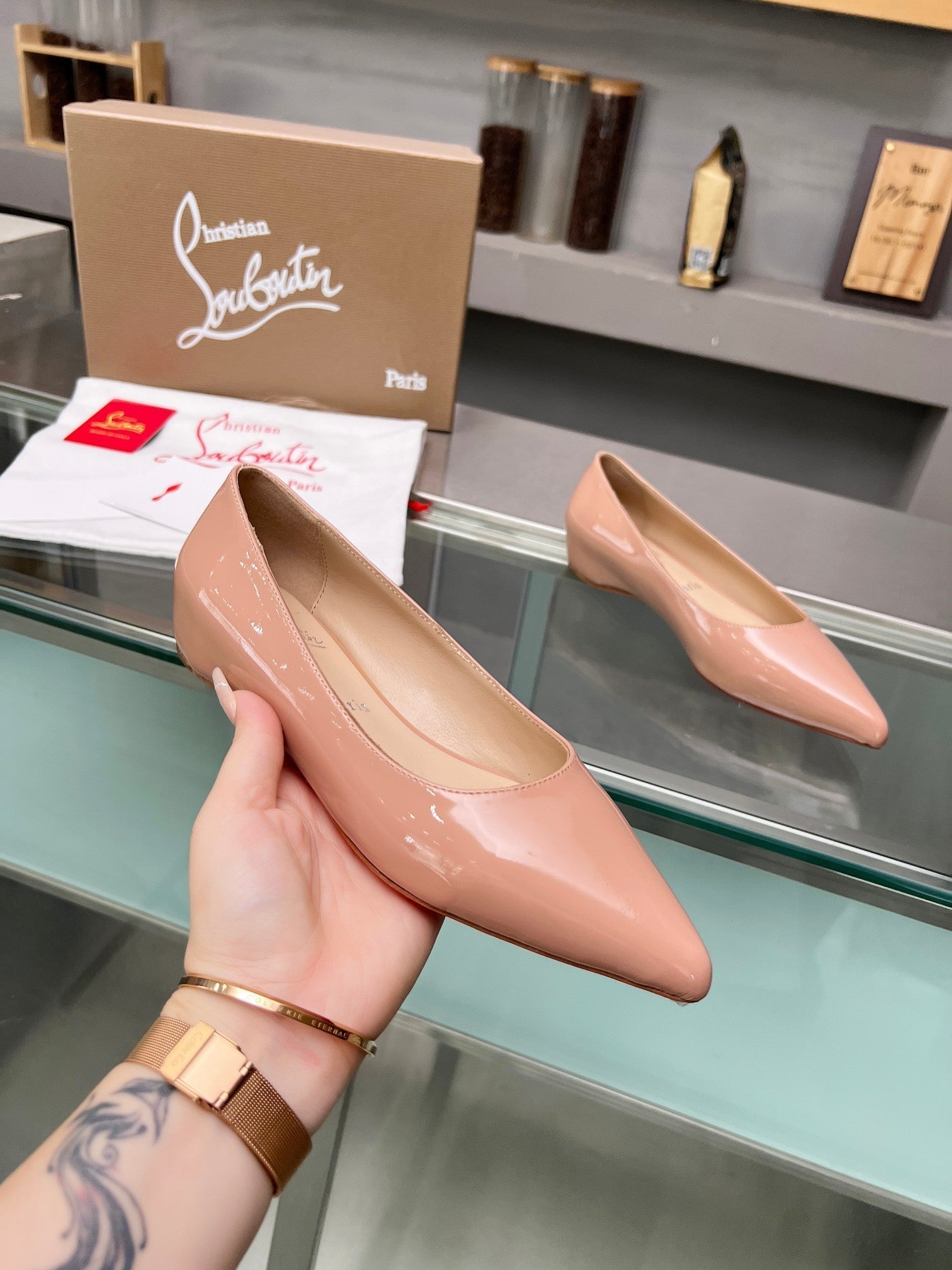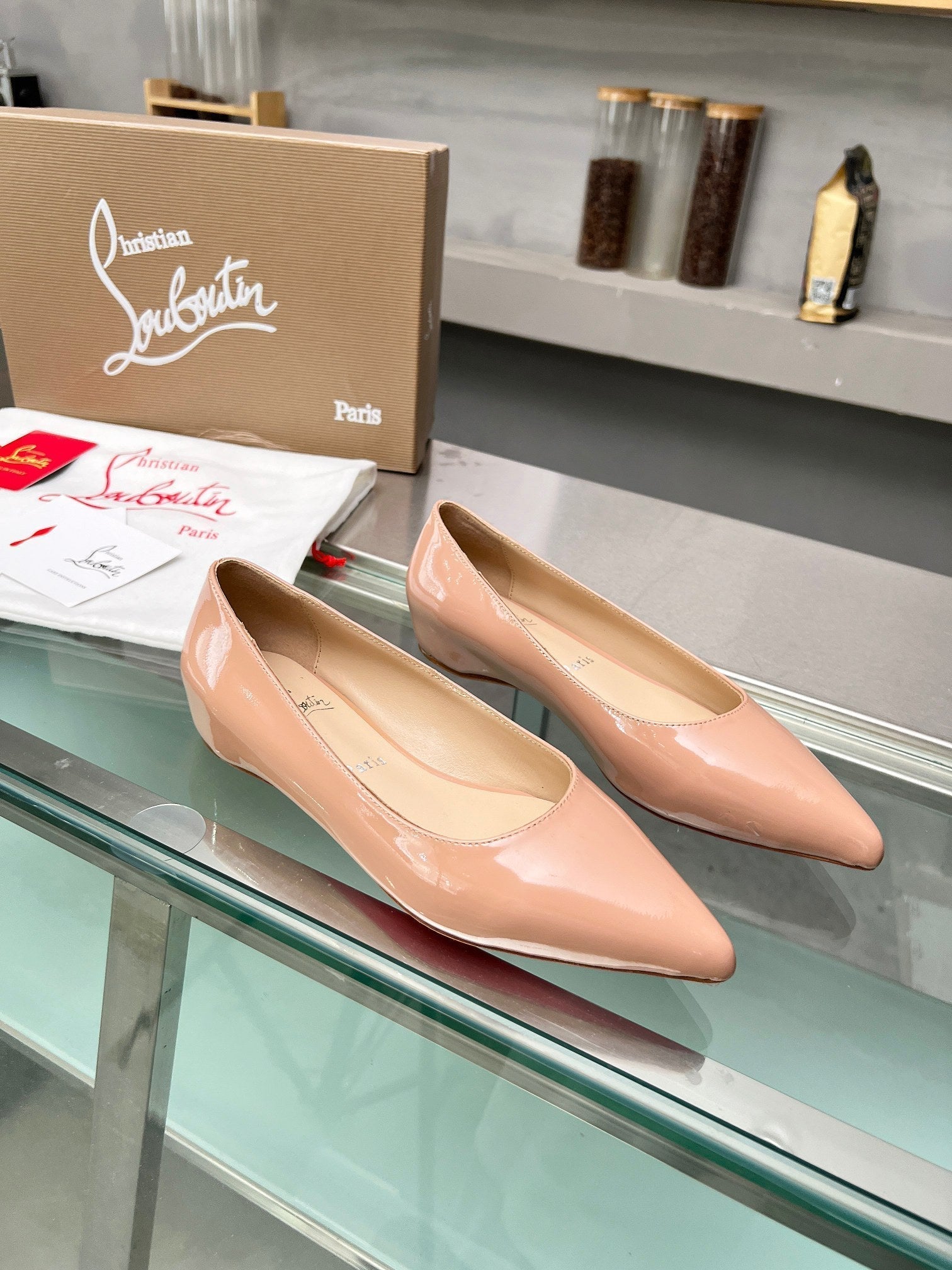 CL Kate Ballerina Flats Patent Leather Nude