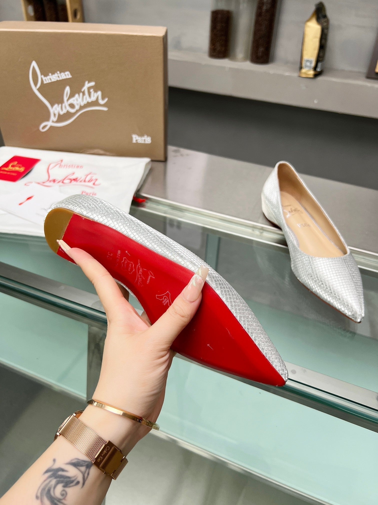 CL Kate Ballerina Flats Sequin Fabric Silver