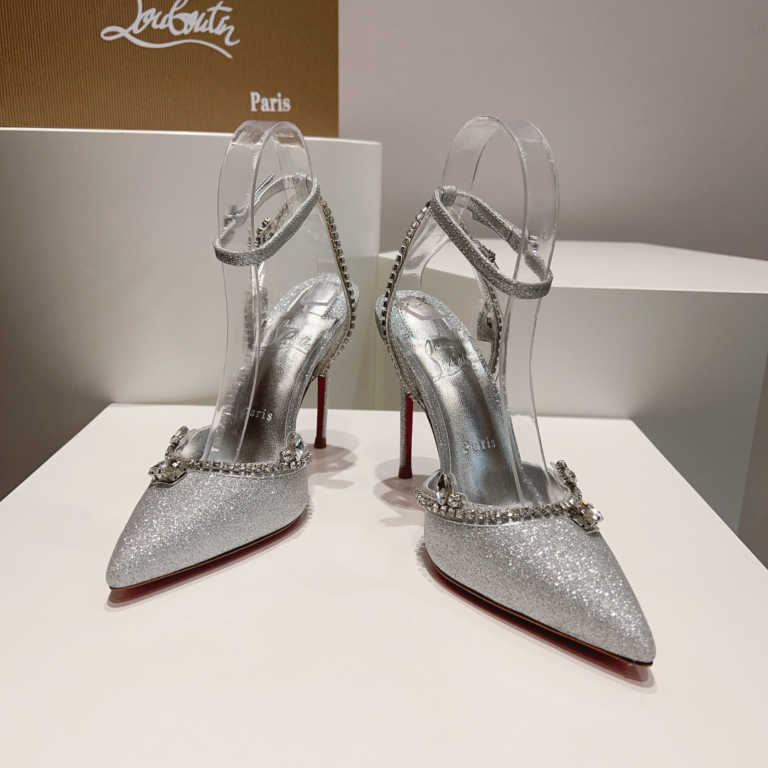 CL Marykate Queen 100MM Pumps Crystal-Embellished Glitter Silver