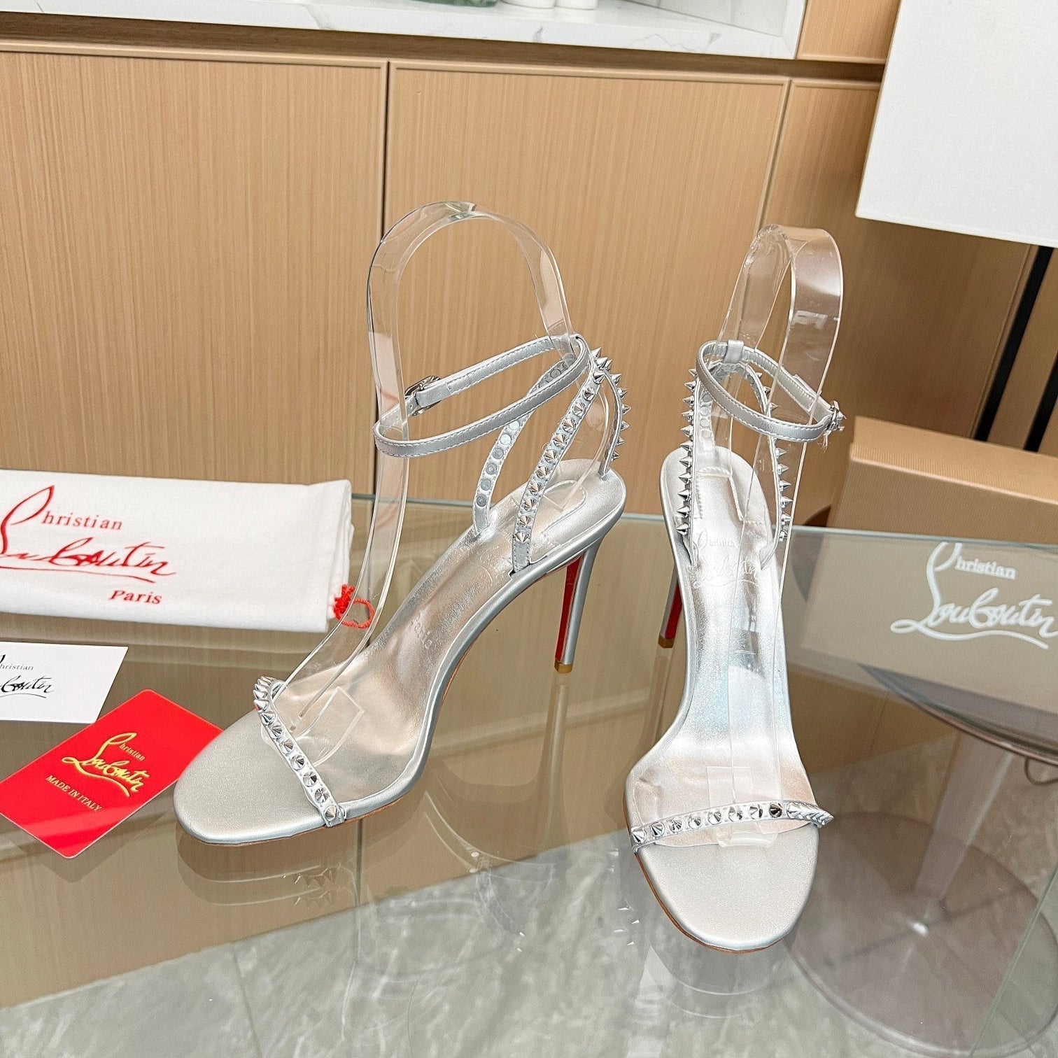CL So Me 105 mm Strappy Sandal Silver Imported Rivets with Sheepskin 251016
