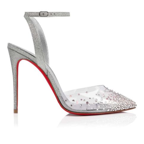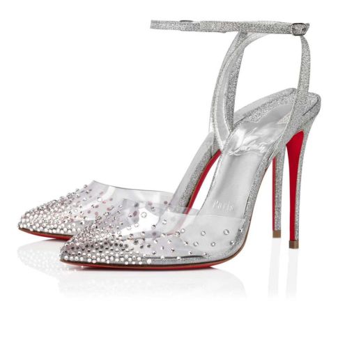 CL Spikaqueen 100 Mm Pumps PVC Calf Leather And Strass Silver