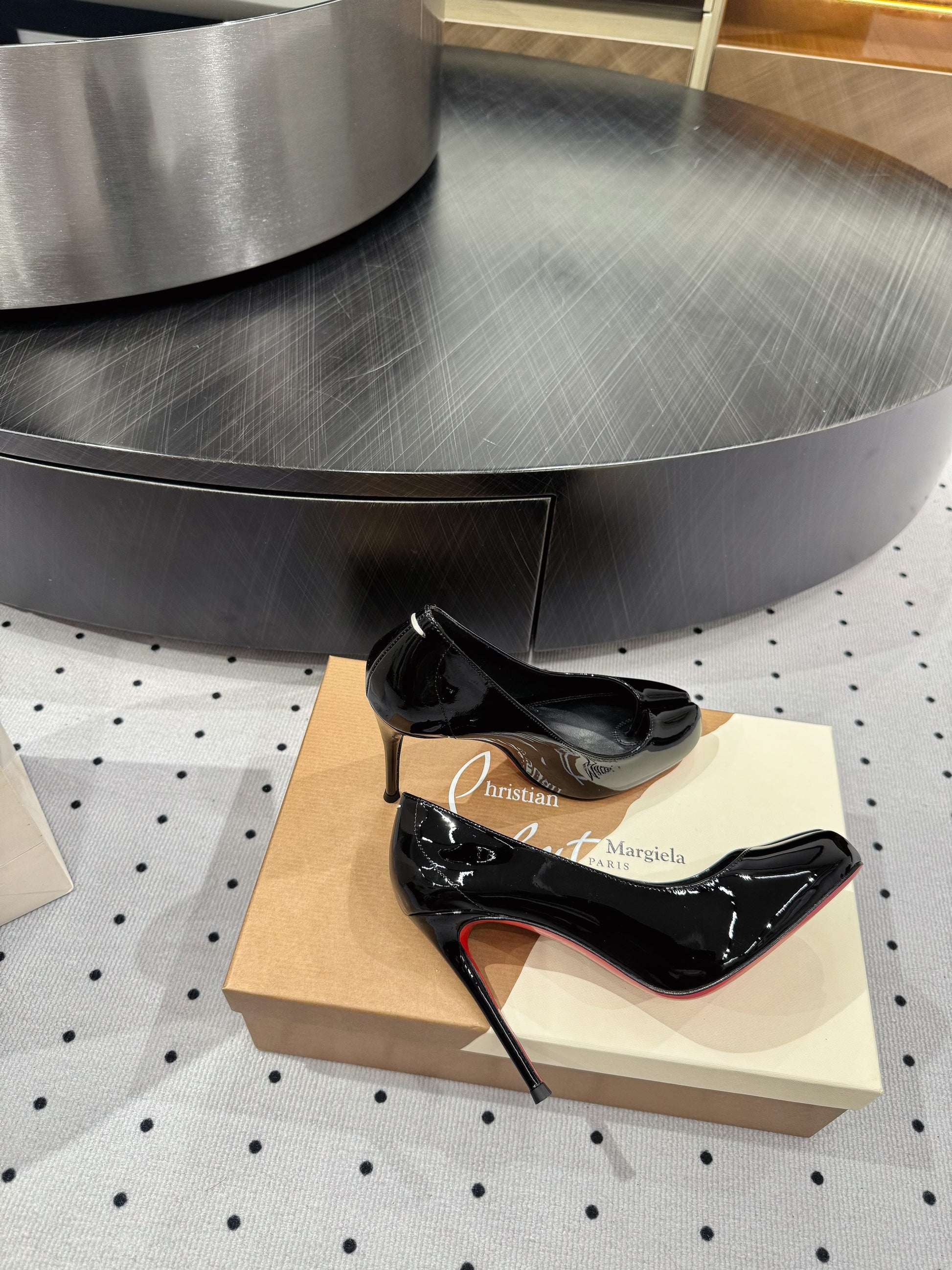CL x Margiela 25 Pumps Black 10cm Patent Leather 296036