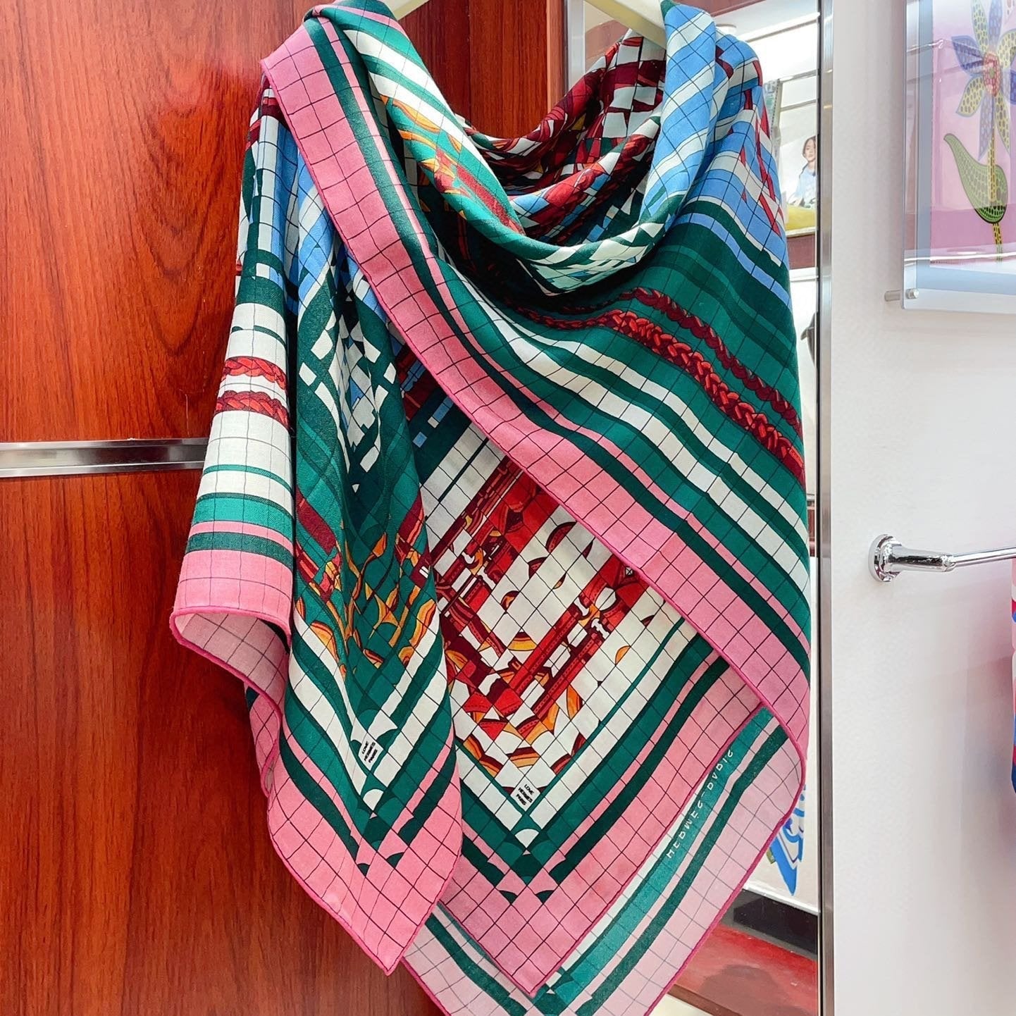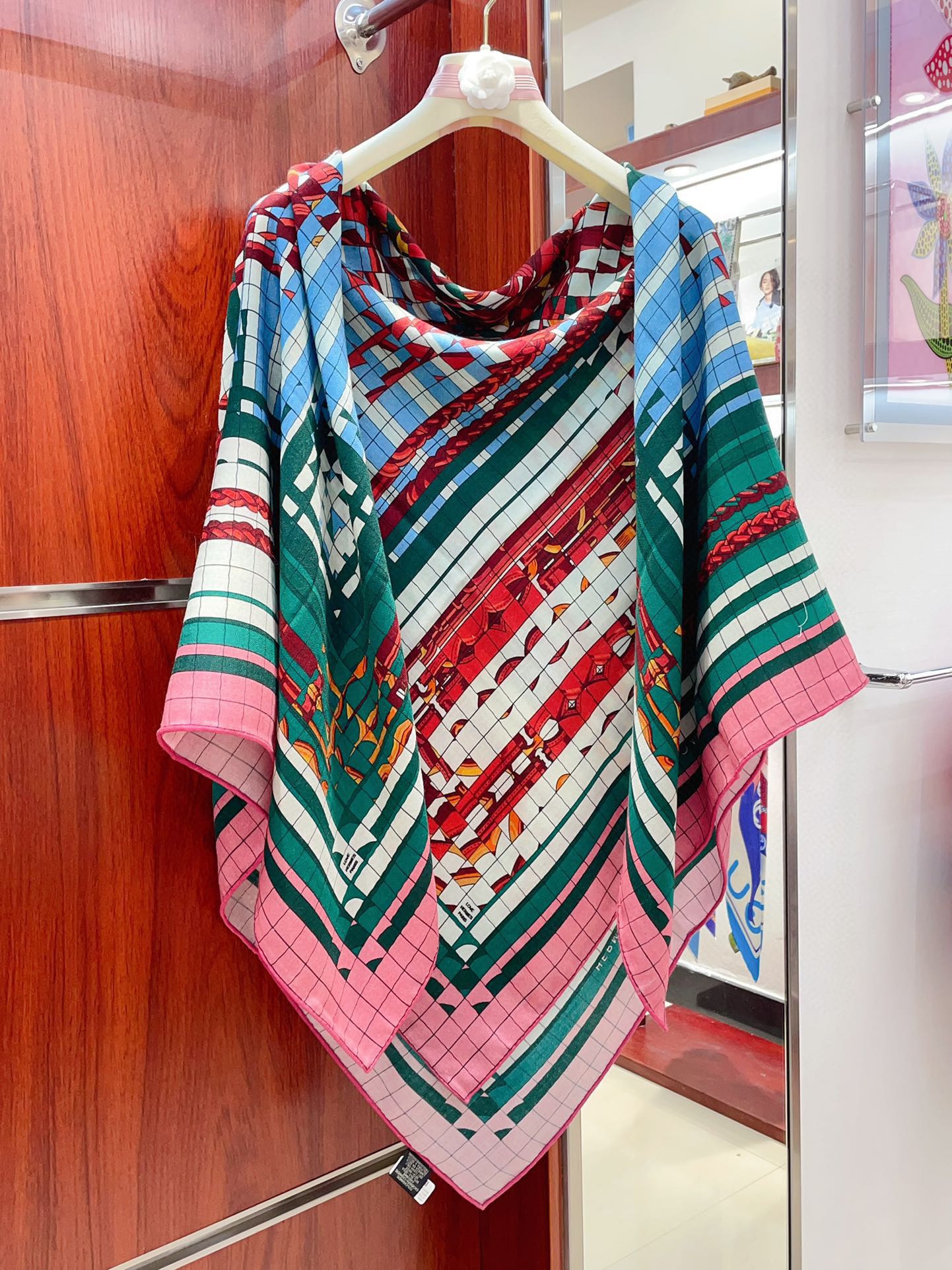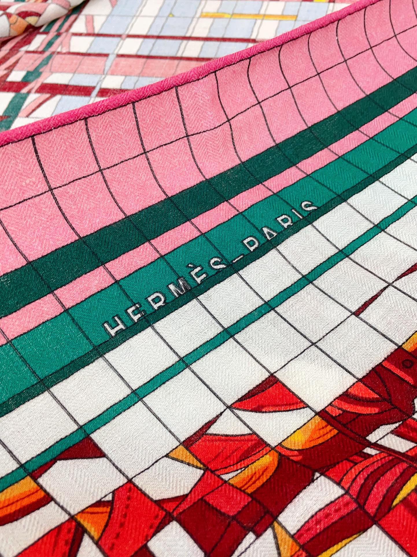 Coaching Deja-Vu Shawl 140 CM Pink Colorful Cashmere And Silk 398264