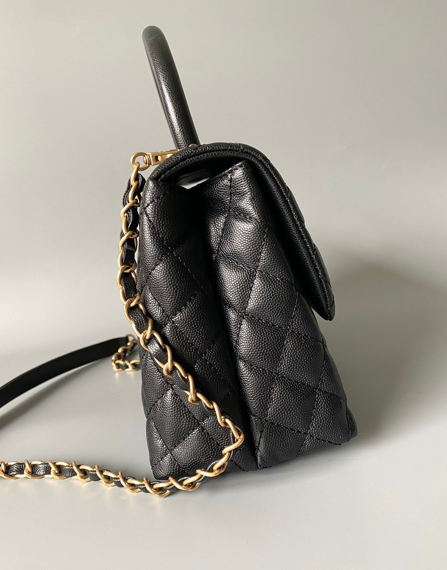 coco handle large flap bag 28cm black quilted caviar gold hardware