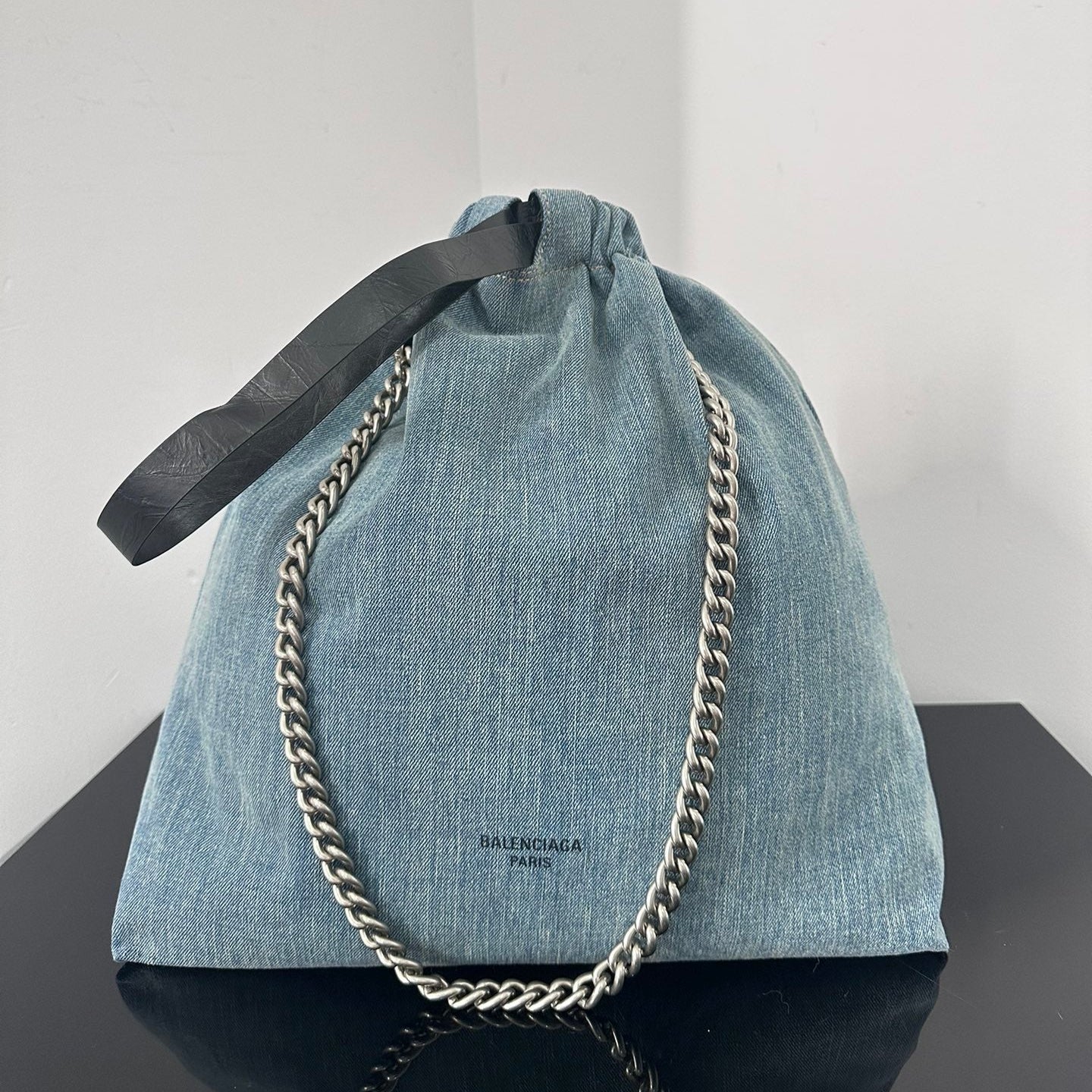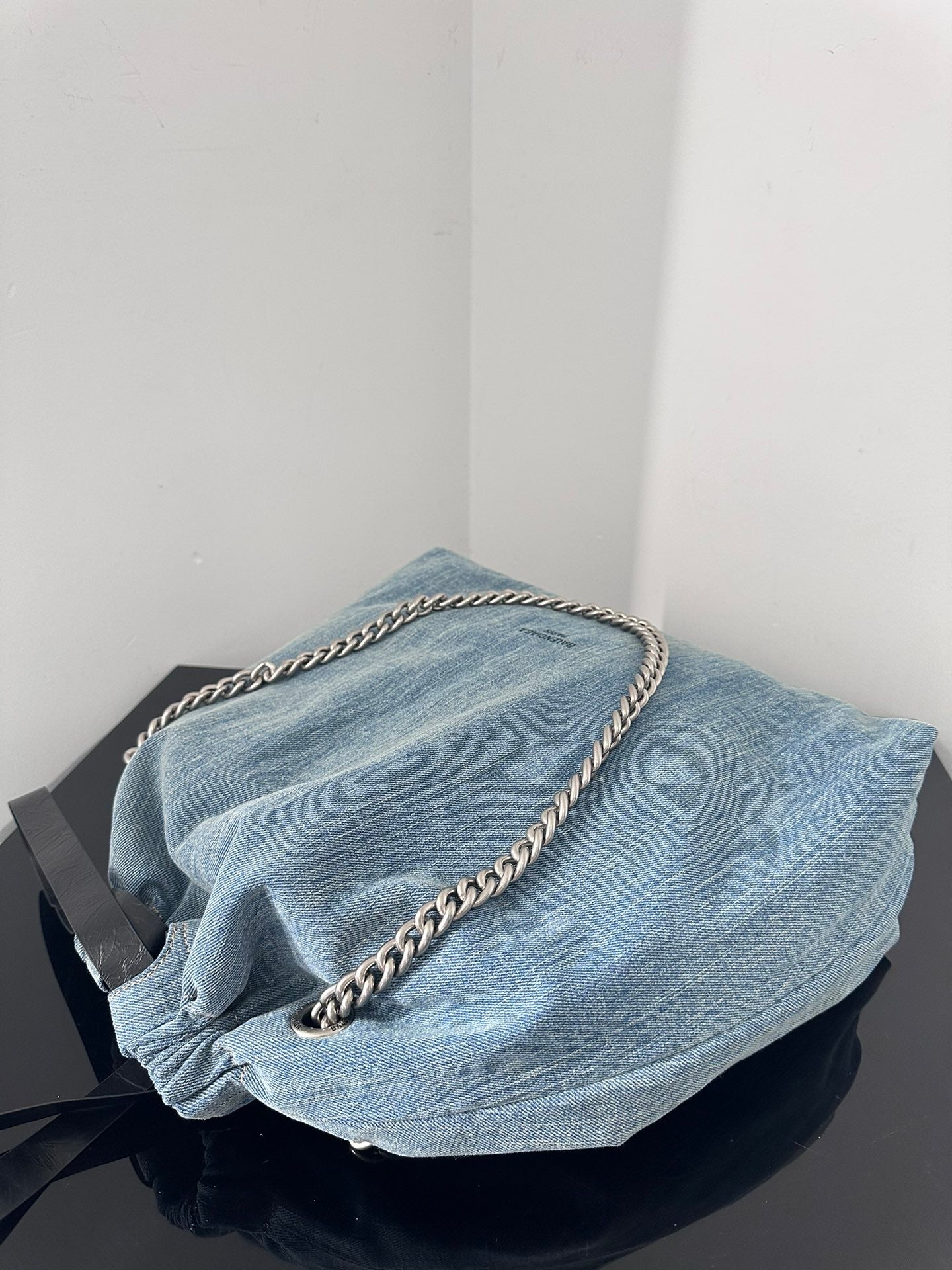 CRUSH LARGE TOTE BAG 46 IN BLUE WASHED DENIM SILVER HARDWARE