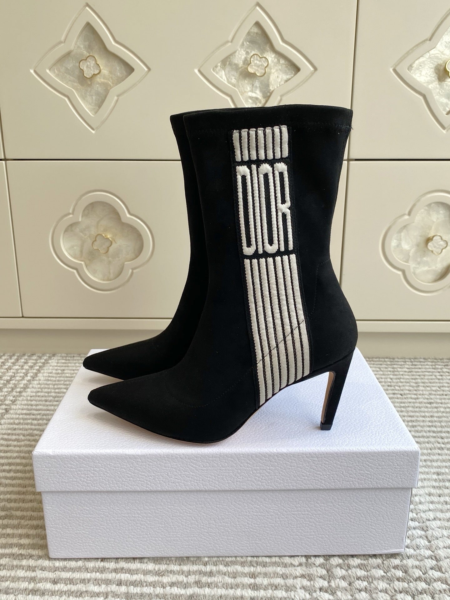 Dior 2025 Tribales Heeled Ankle Boot 80mm Black White Suede 501194