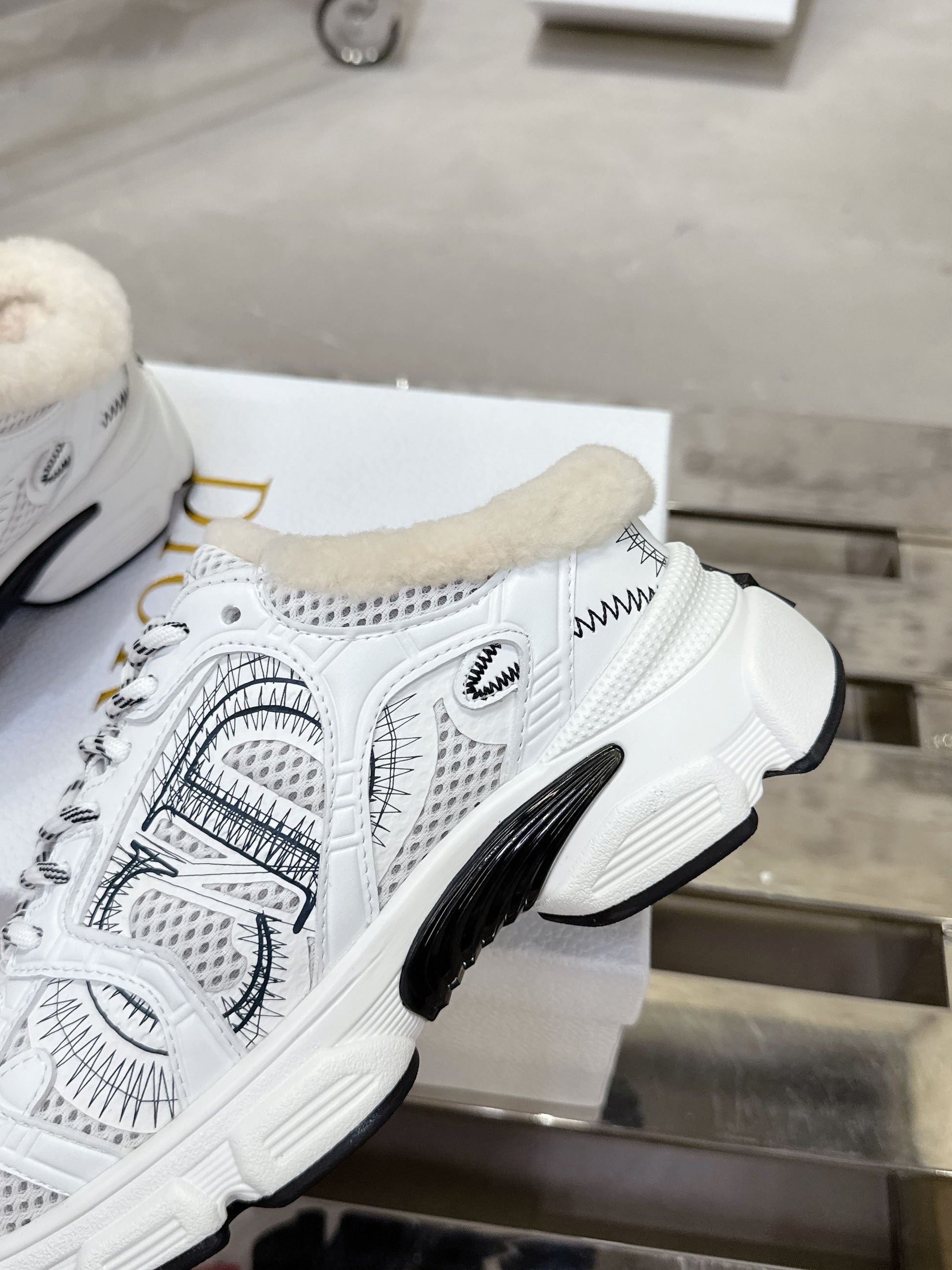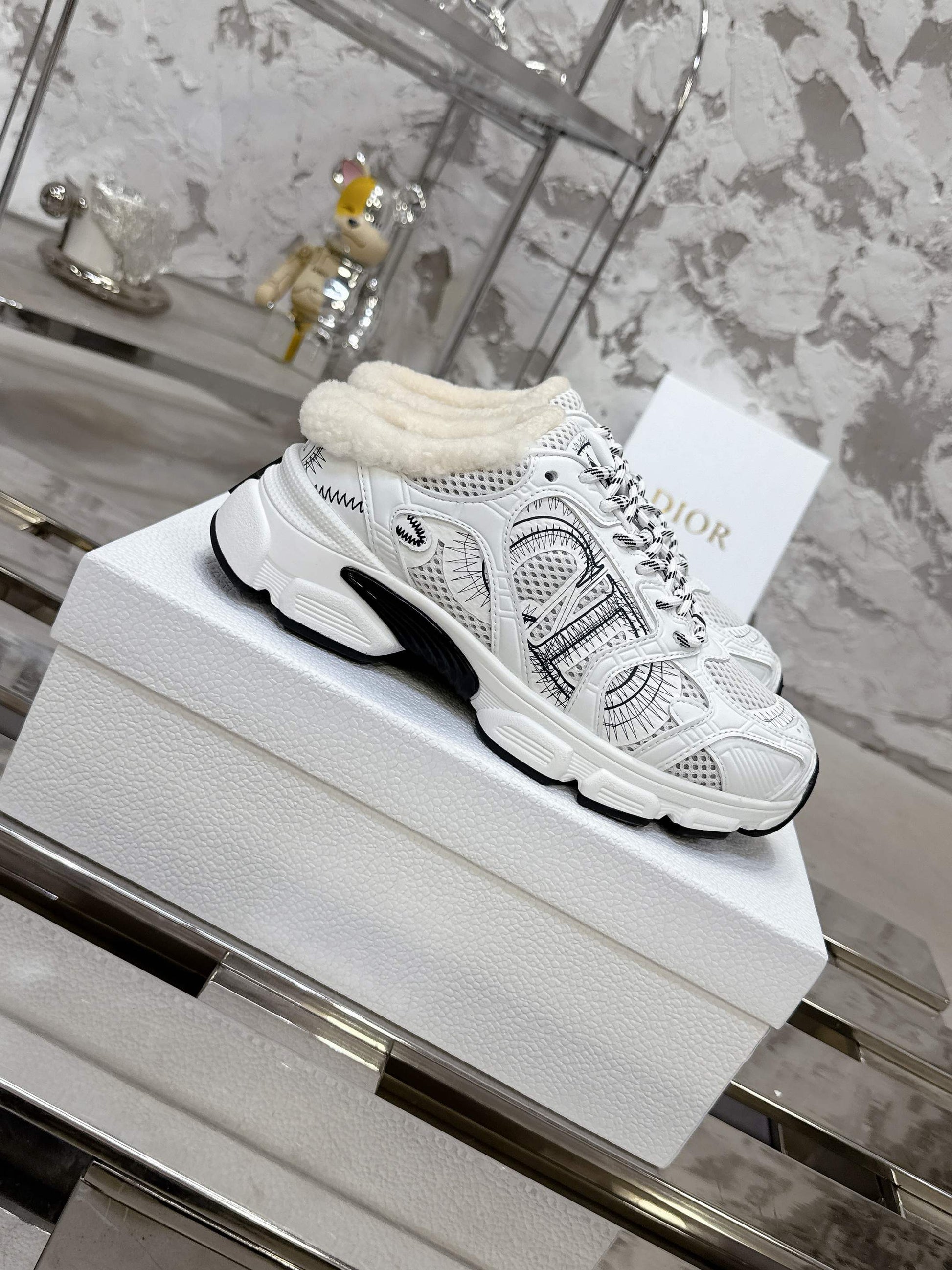 Dior 25 Chrono Sneakers White Black Mesh Calfskin 530324