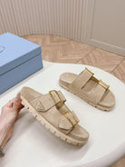 Double Buckle Strap Slides 20 Light Brown Suede