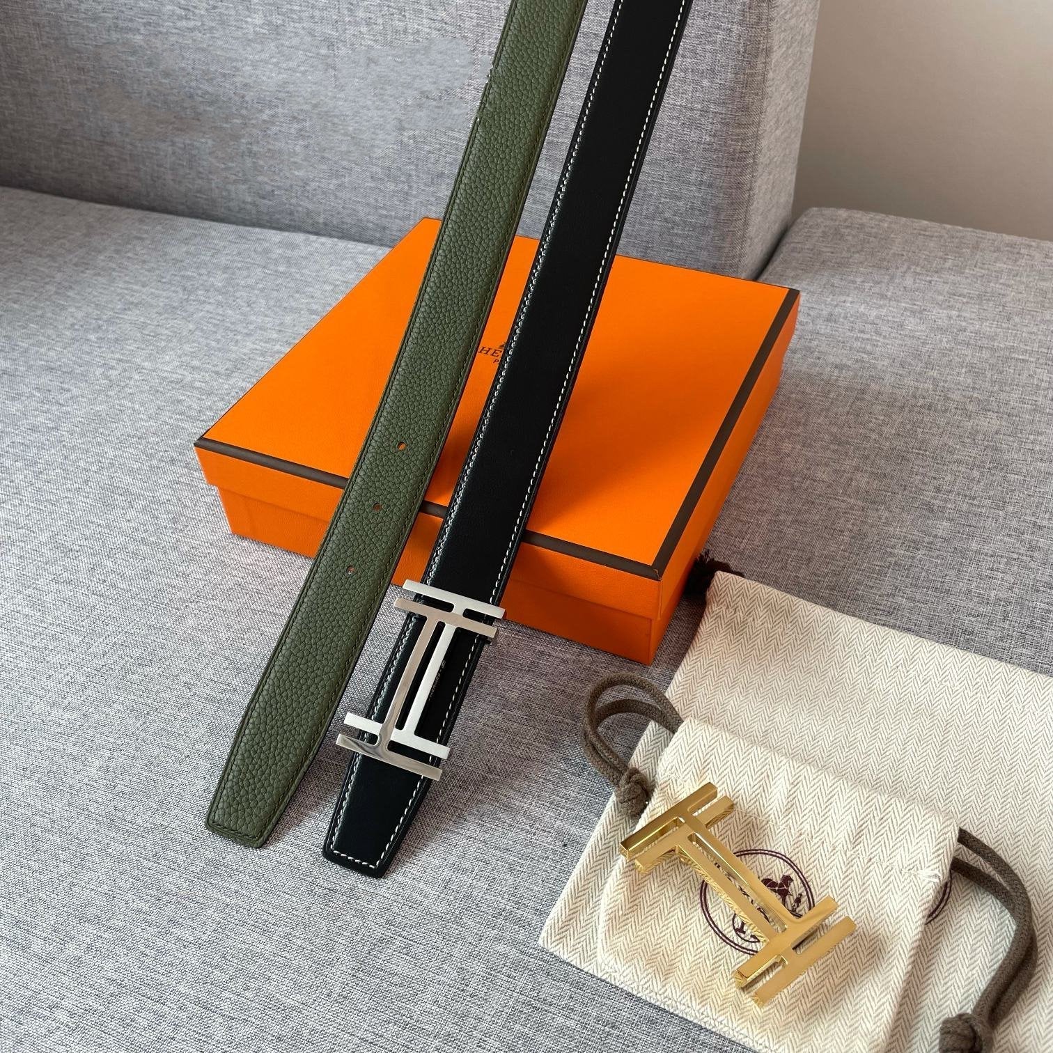 DOUBLE H REVERSIBLE BELT 32MM SILVER BUCKLE BLACK DARK GREEN LEATHER