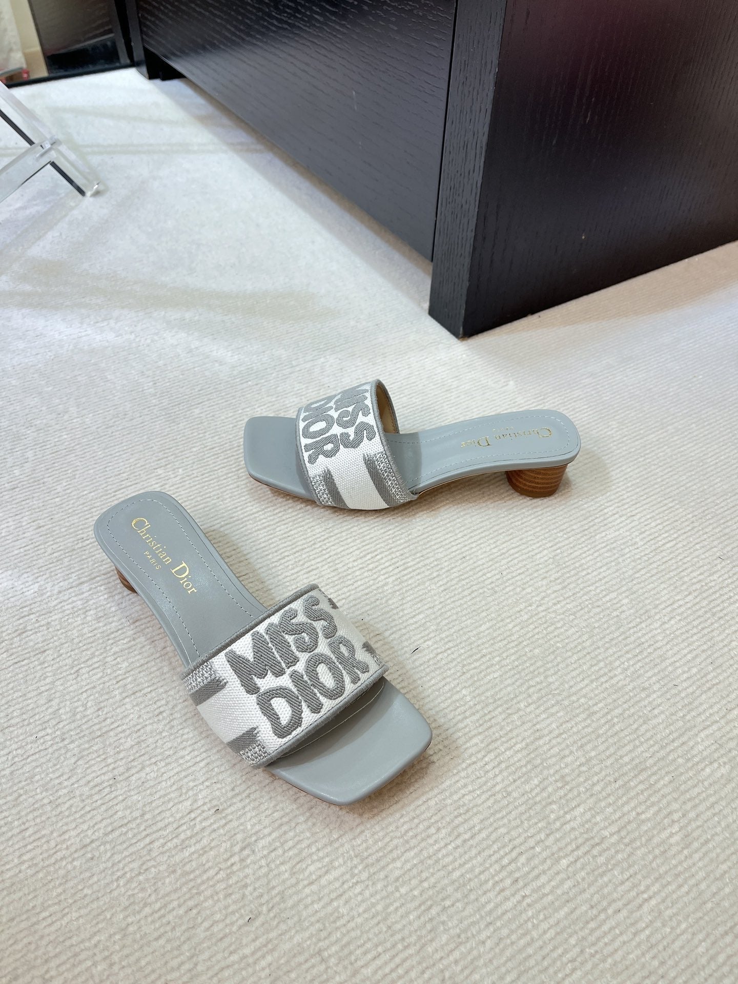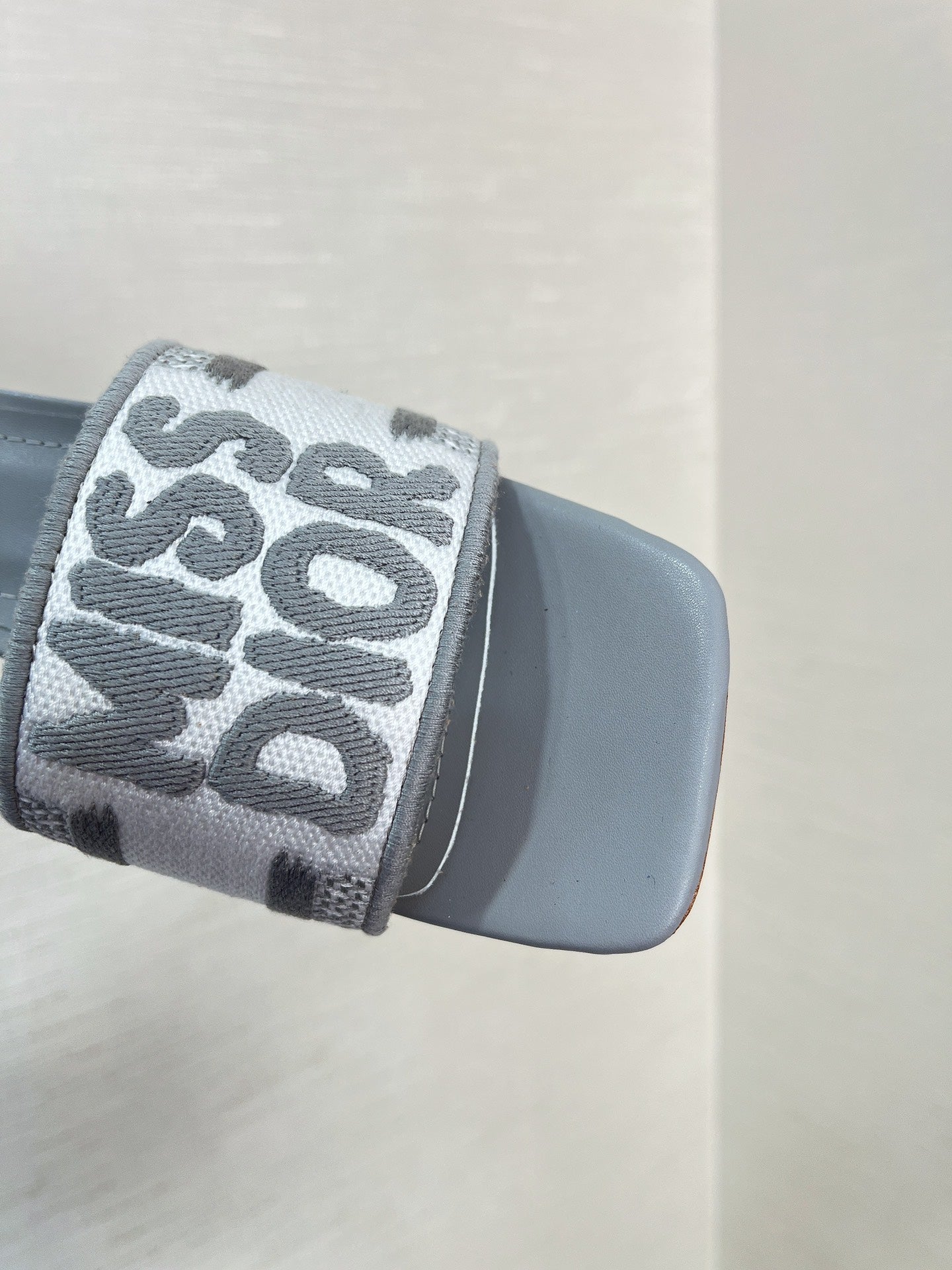 dway heeled slide 35 grey embroidered cotton