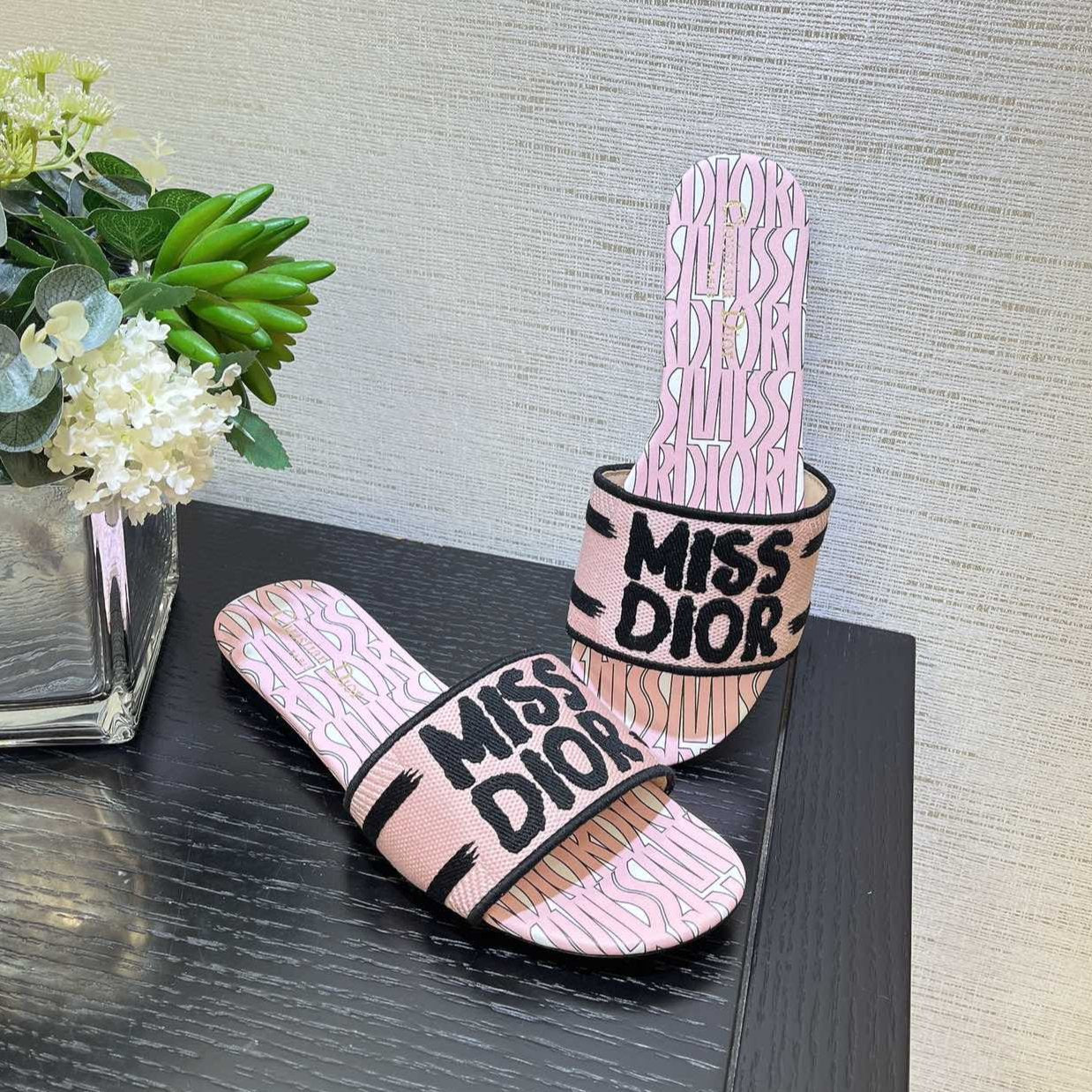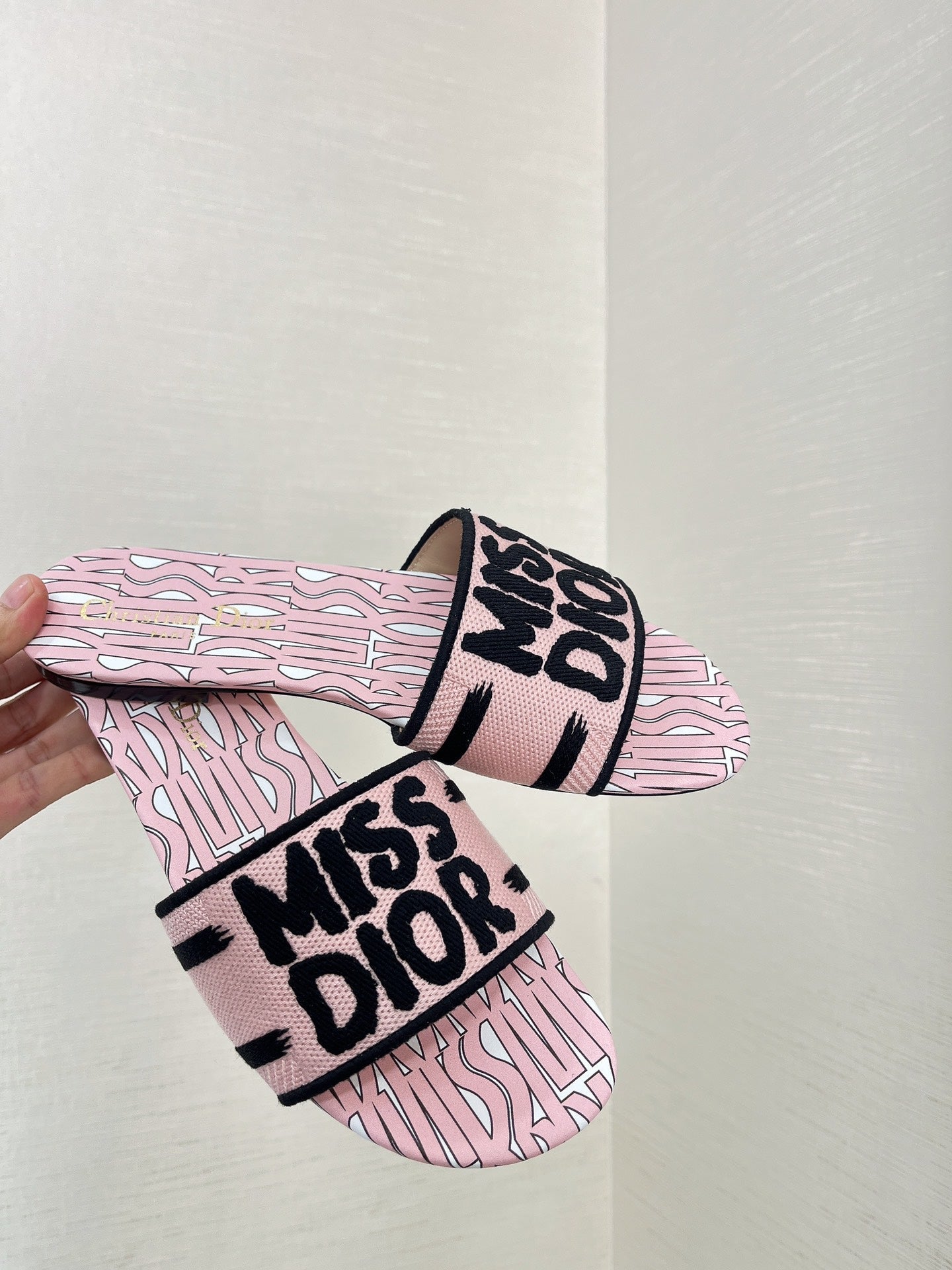 dway slide embroidered cotton pink miss cd alllover motif