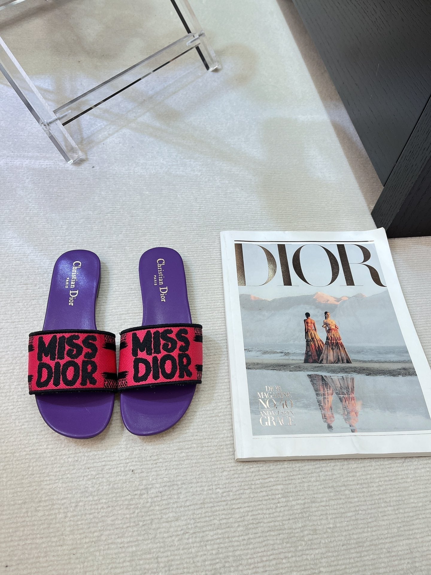 dway slide embroidered red purple cotton