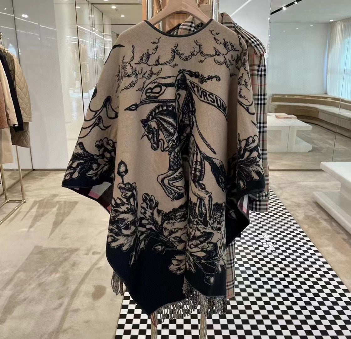 EQUESTRIAN KNIGHT WOOL CAPE 140 CM BEIGE MIX BLACK 403739