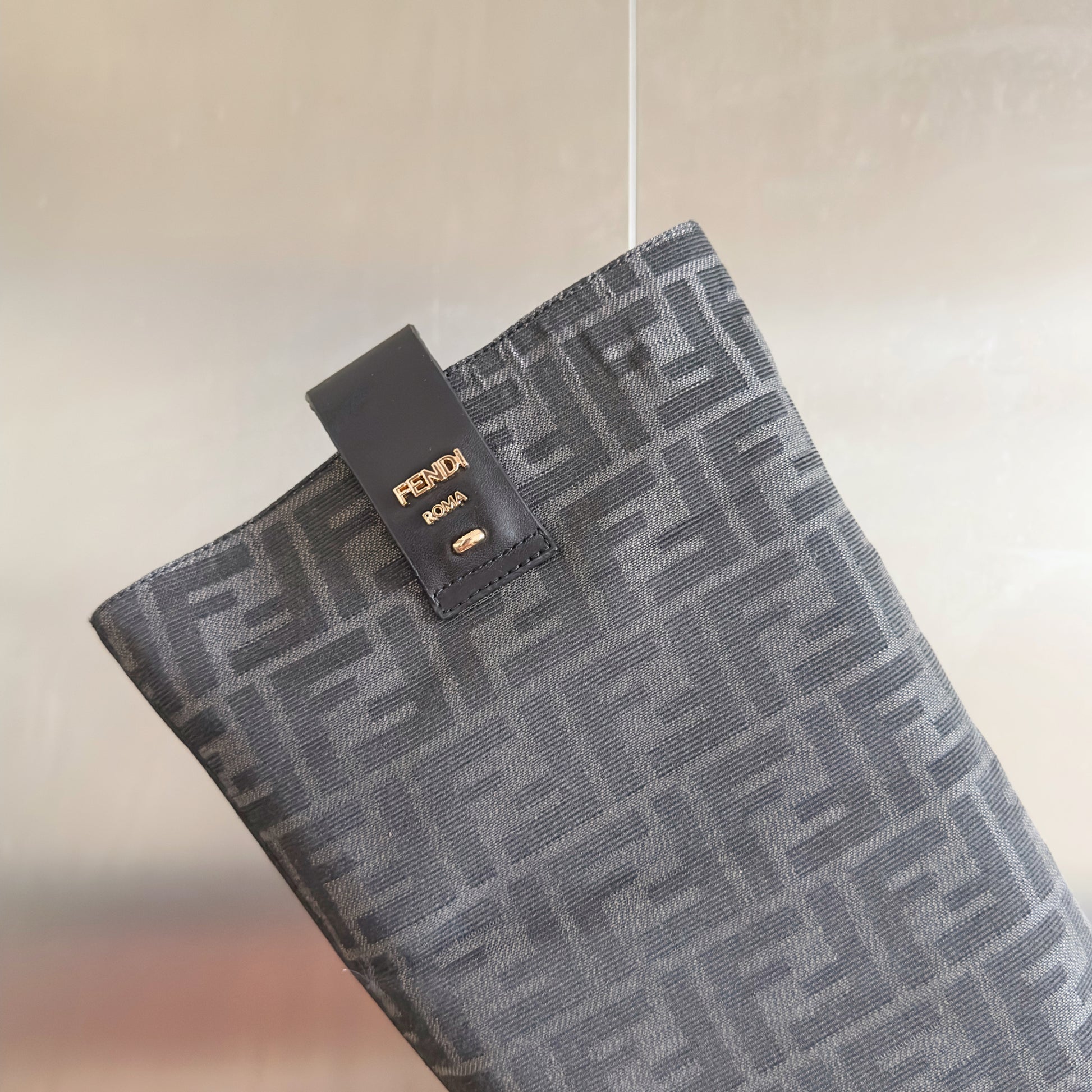 Fendi 2025 Filo Black Sheepskin and FF Fabric Boot 553108
