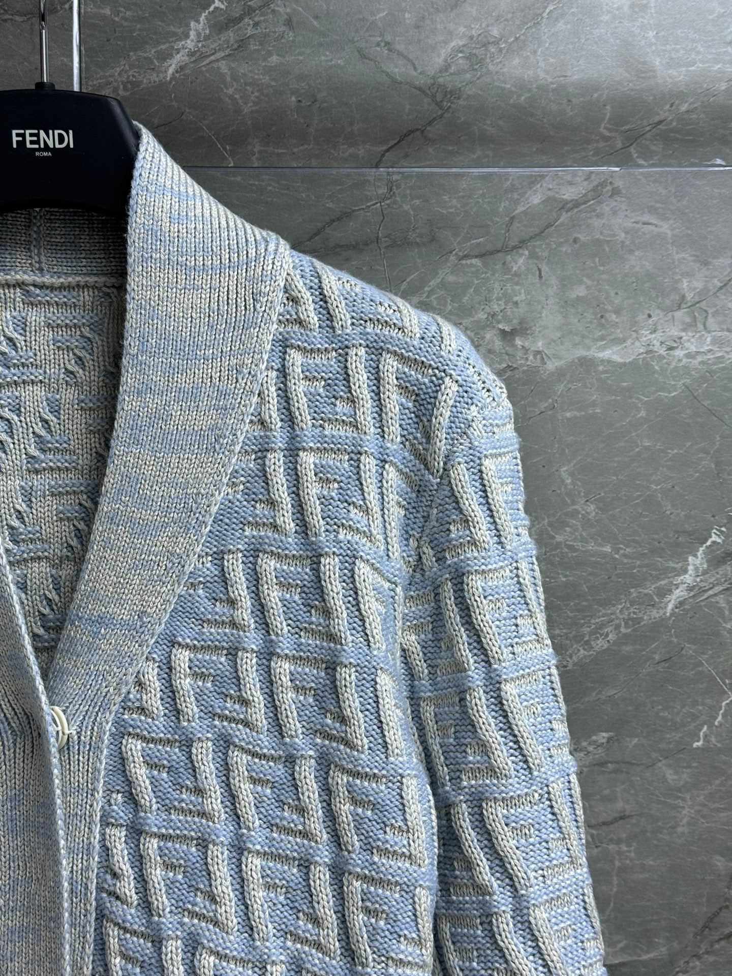 Fendi 2025 V-neck Cardigan Ligth Blue Wool