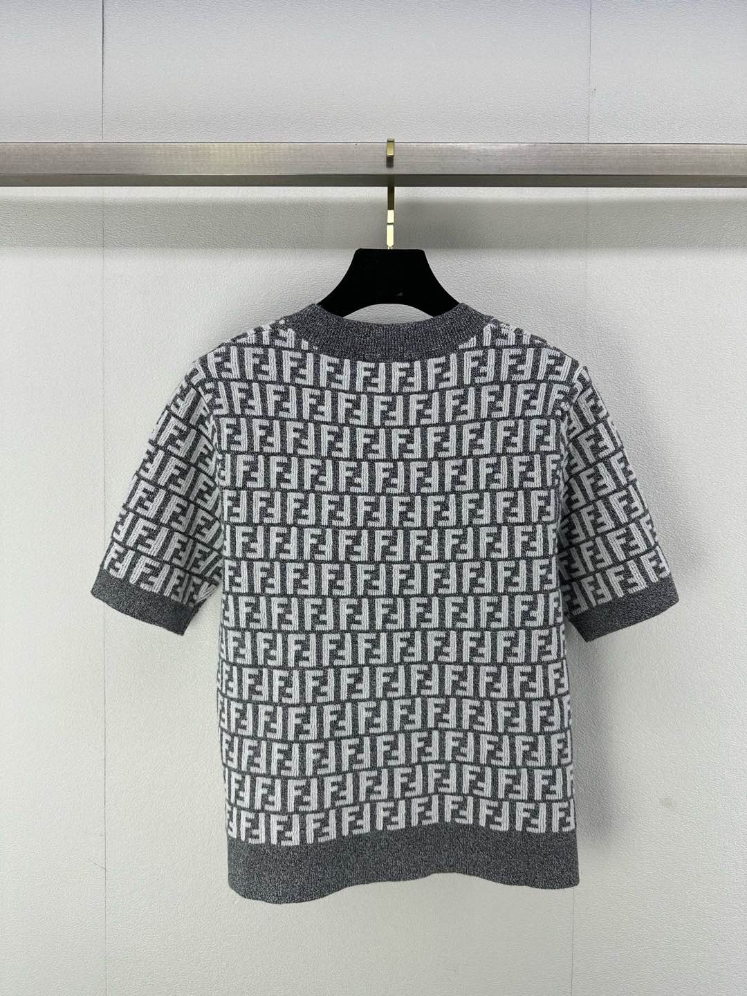 Fendi 25 Knitted Round Neck Short Sleeves Gray Wool F155