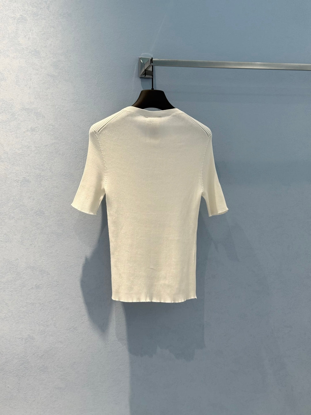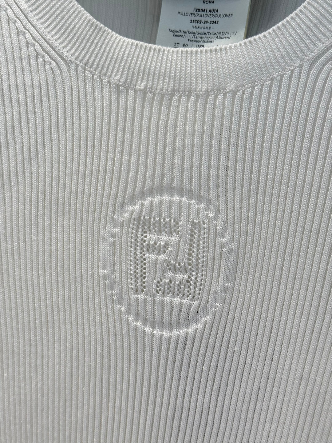 Fendi 25 Letter Hollow Knitted Short Sleeves top White Silk Cotton