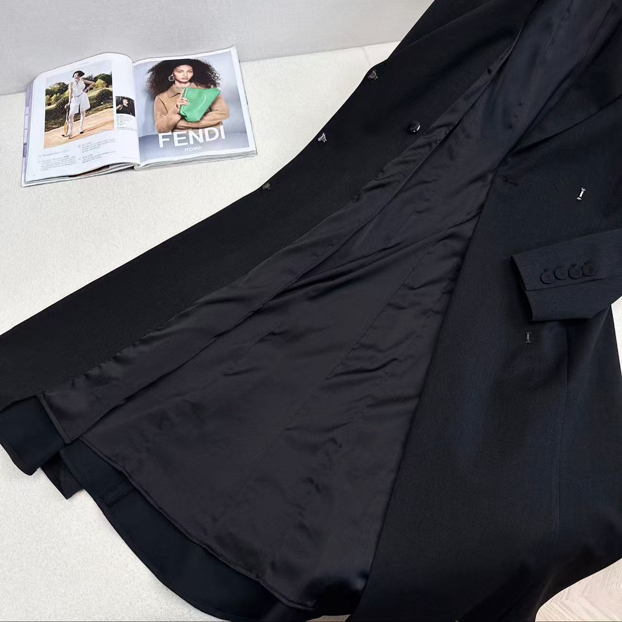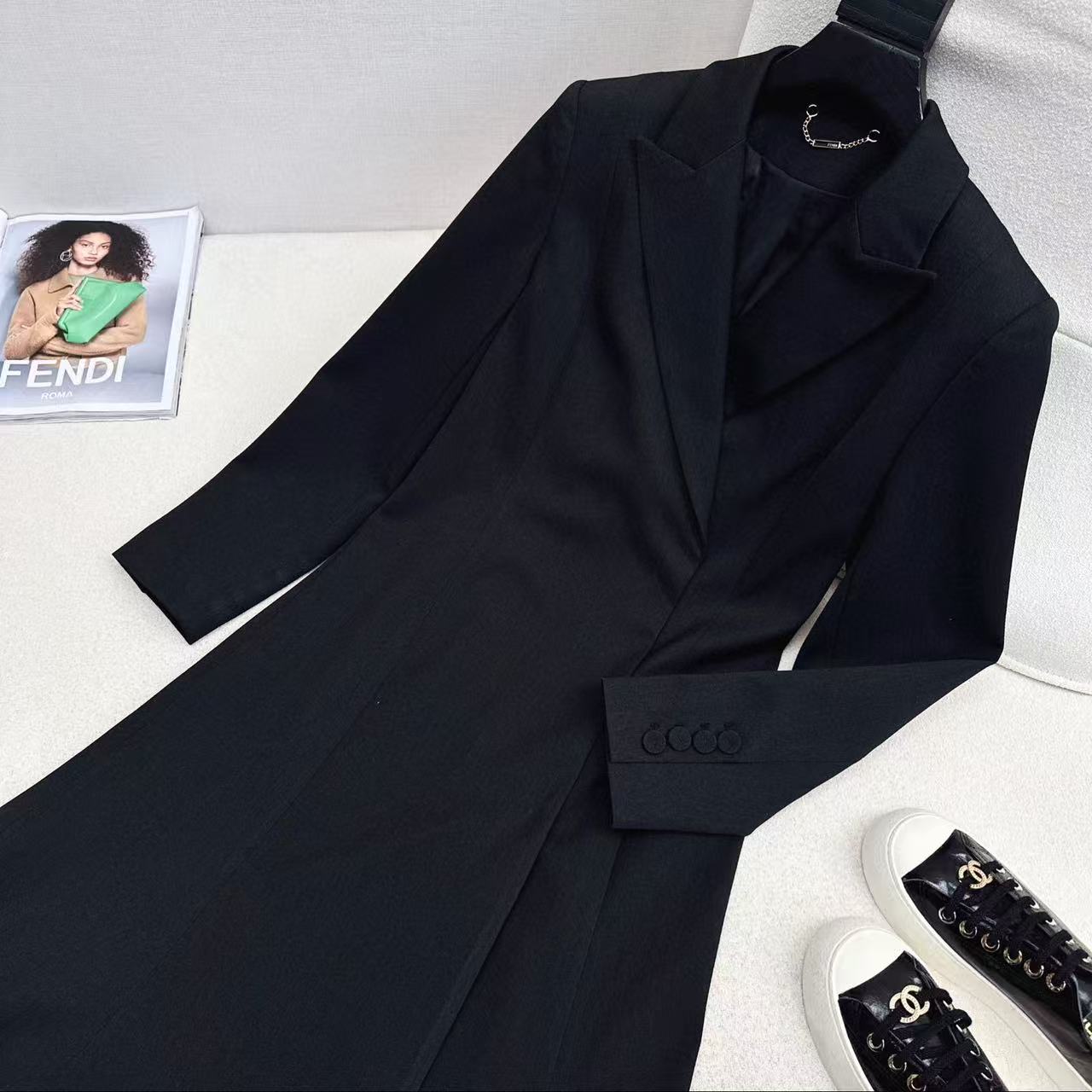 Fendi 25 Long Suit Coat Black Polyester