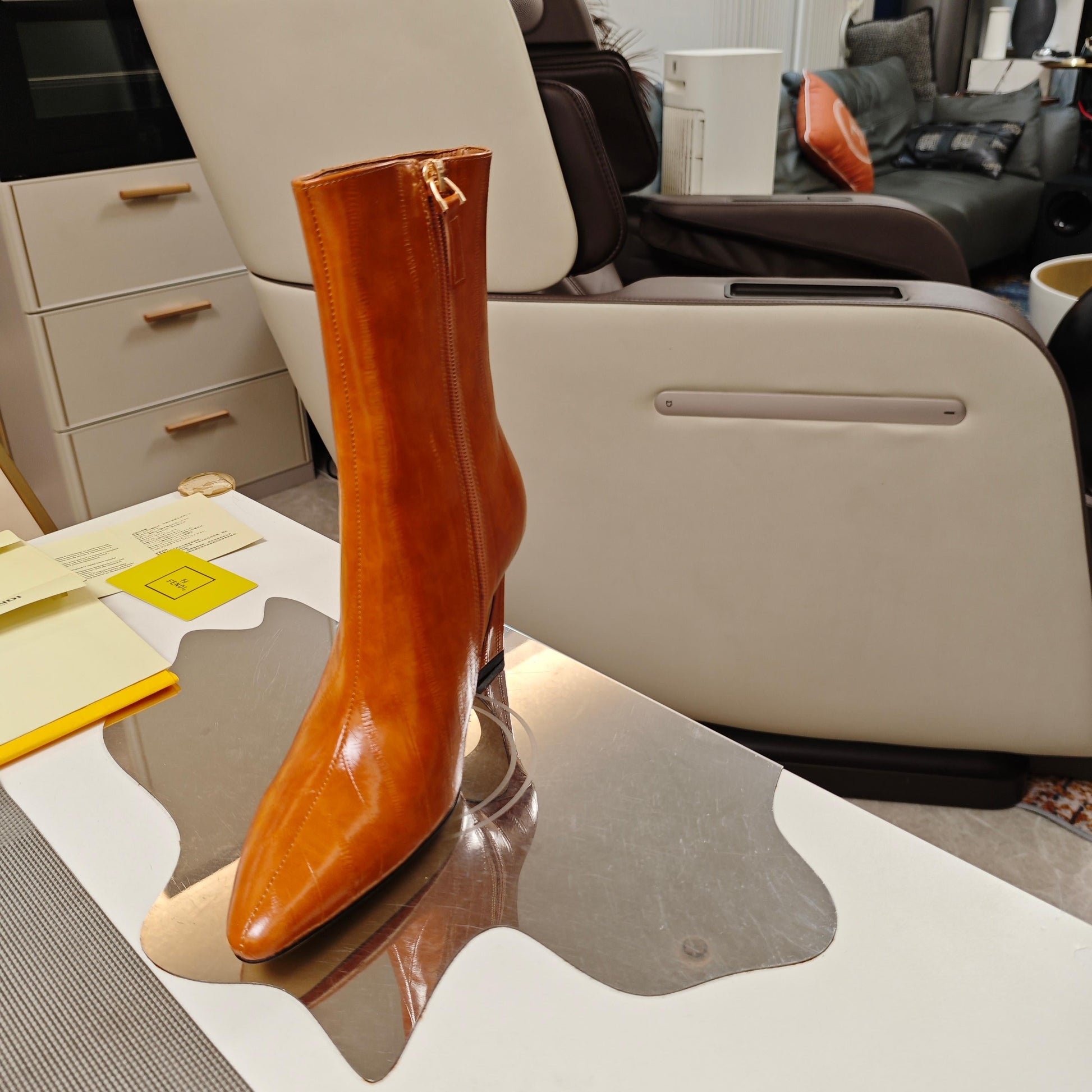 Fendi 25ss high-heeled boots caramel brown sheepskin 502716