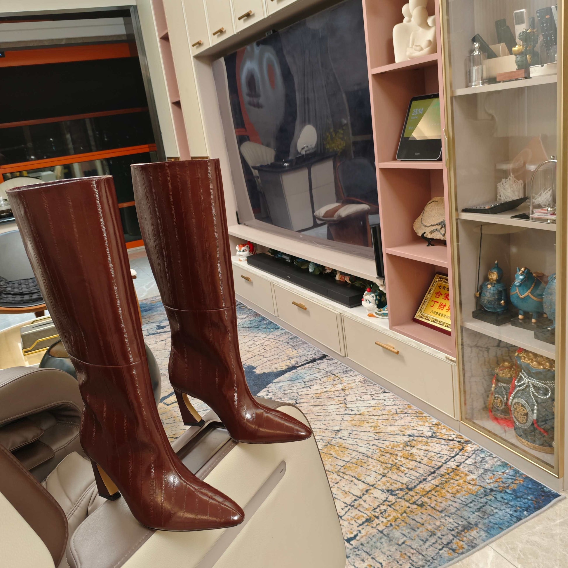 Fendi 25ss high-heeled boots reddish brown sheepskin 502719