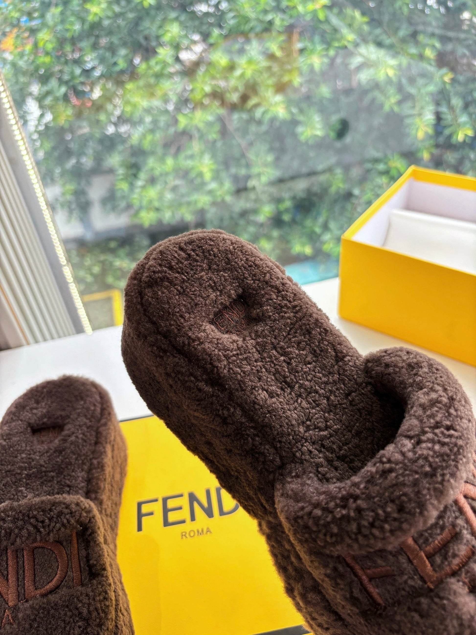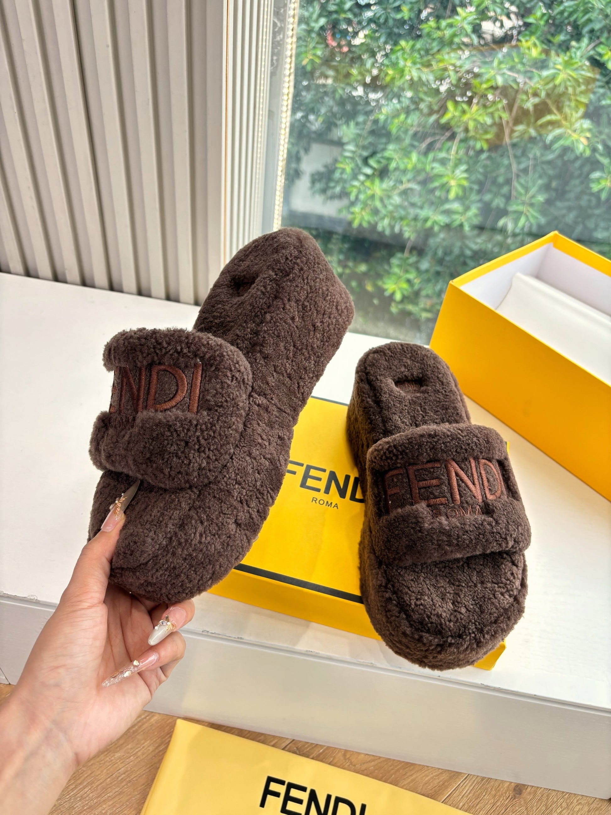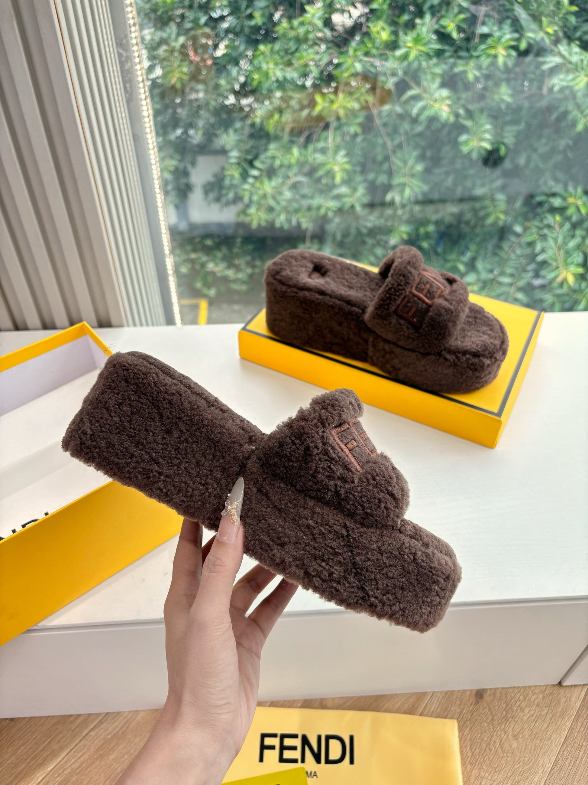 Fendi 25ss slippers dark brown wool 507102