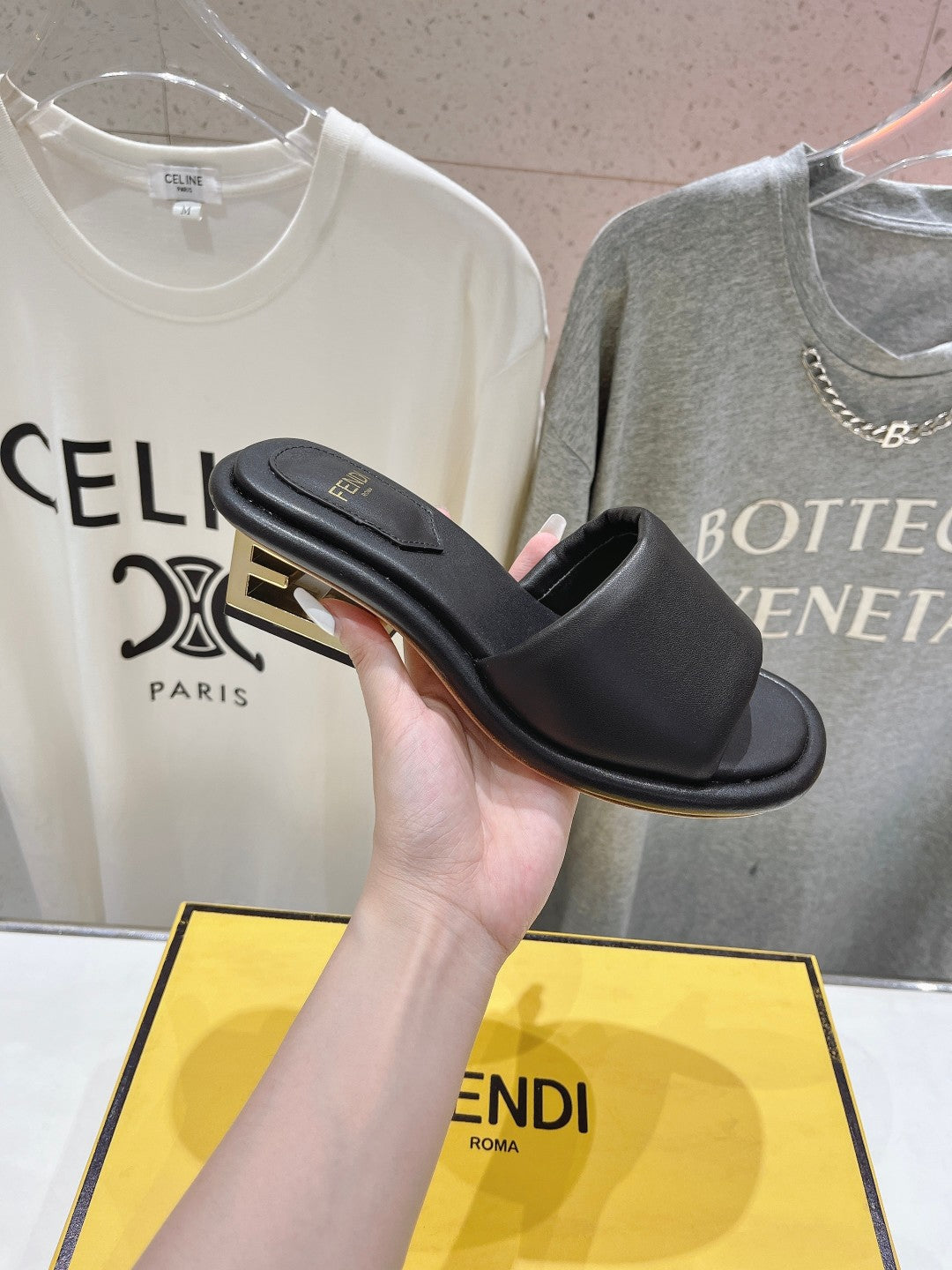 FENDI BAGUETTE MEDIUM-HEEL SANDALS 45 MM IN BLACK CALFSKIN