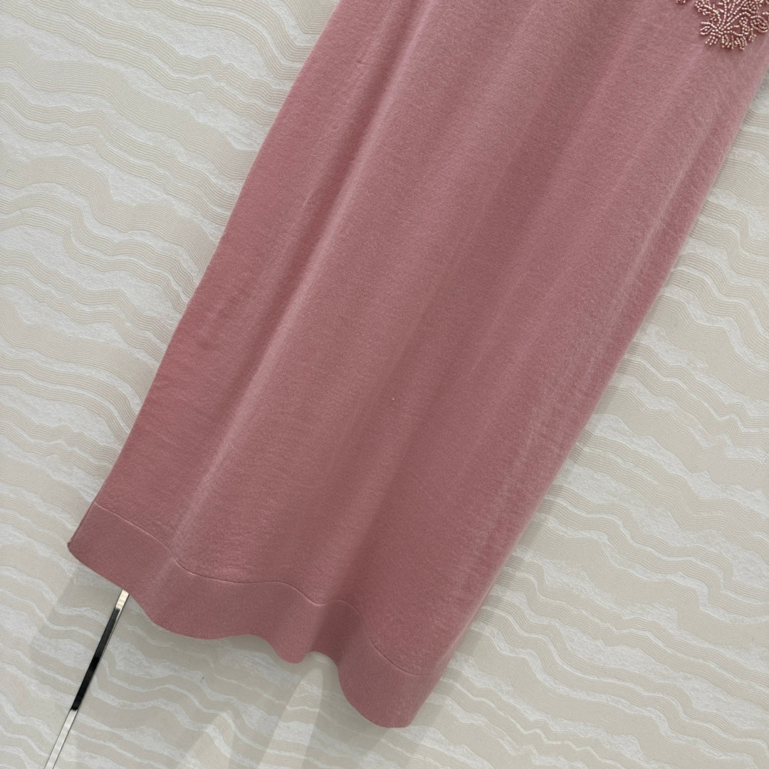 Fendi Beaded Flower Knitted Dress Pink Wool
