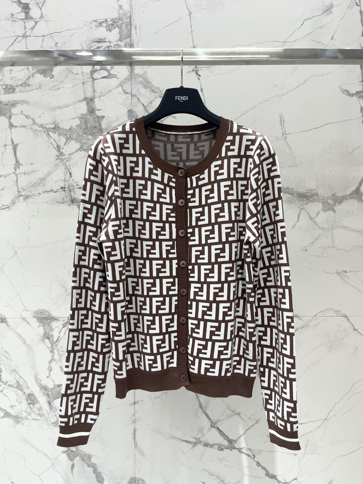 Fendi Double f Letter Knitted Cardigan Brown Wool