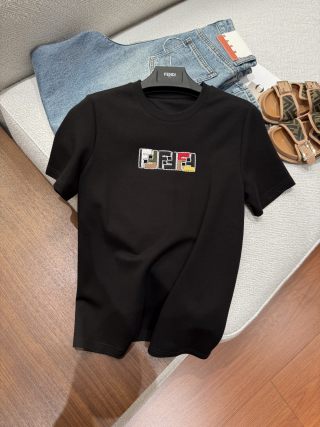 Fendi Embroidered Beaded T-shirt Black White Cotton