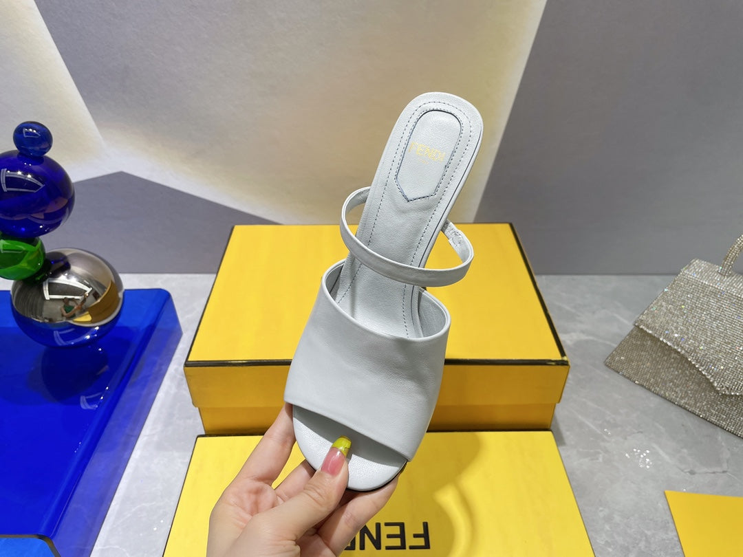 FENDI FIRST 95 MM HIGH-HEELED SANDAL IN CLOUD GREY LAMBSKIN GOLD HARDWARE