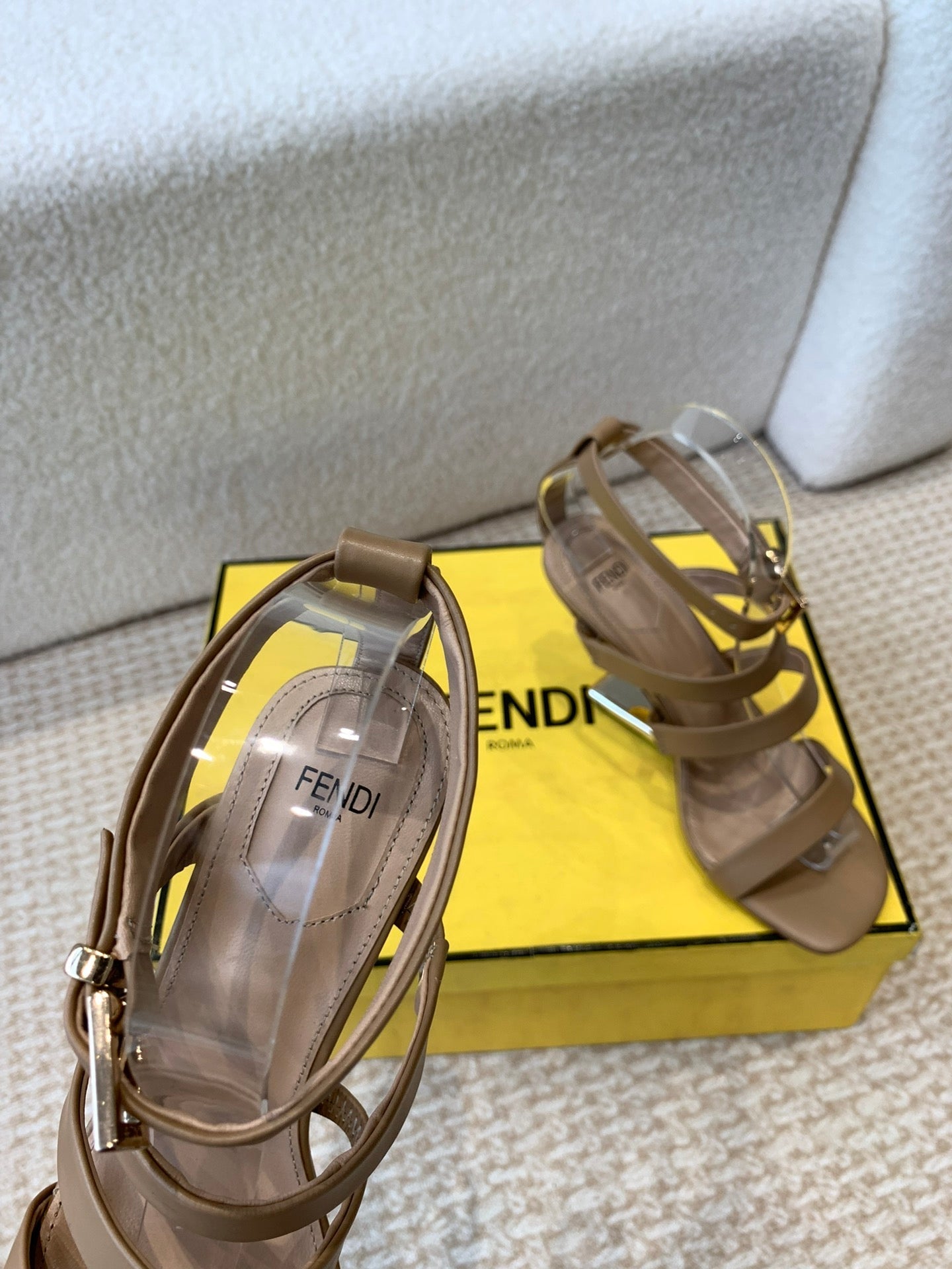 FENDI HIGH SANDAL 10 CM IN SEPIA BROWN CALFSKIN