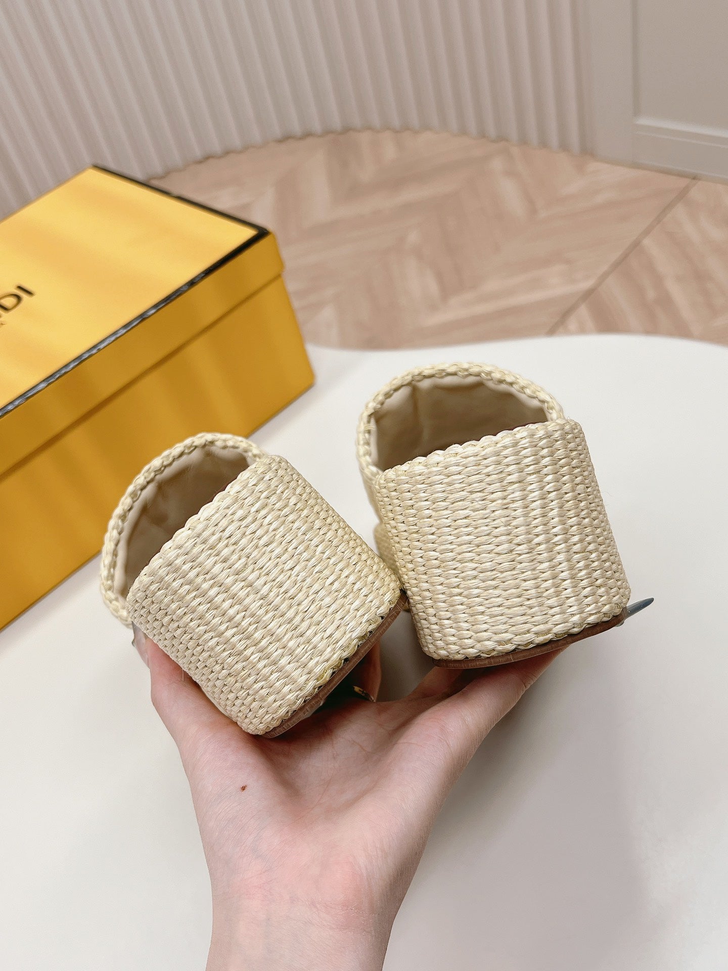 FENDI SIGNATURE WEDGE PLATFORM 6 CM IN BEIGE FIBRE WITH BROWN EMBROIDERED LOGO