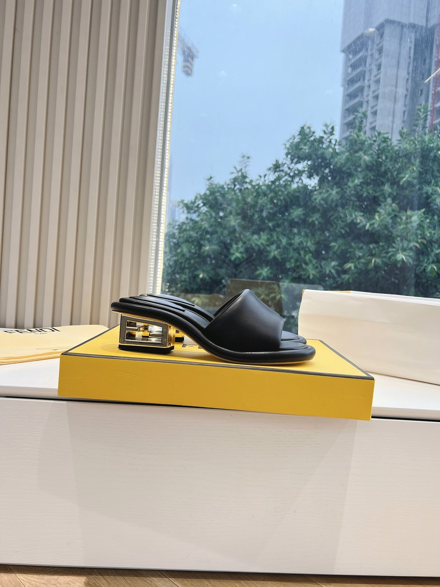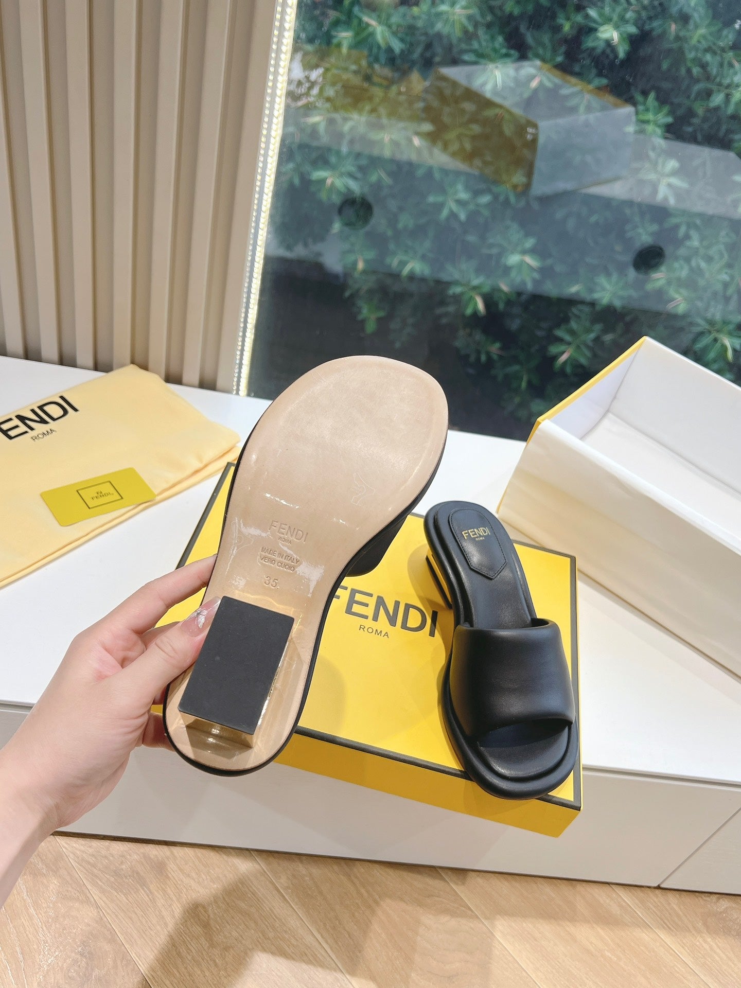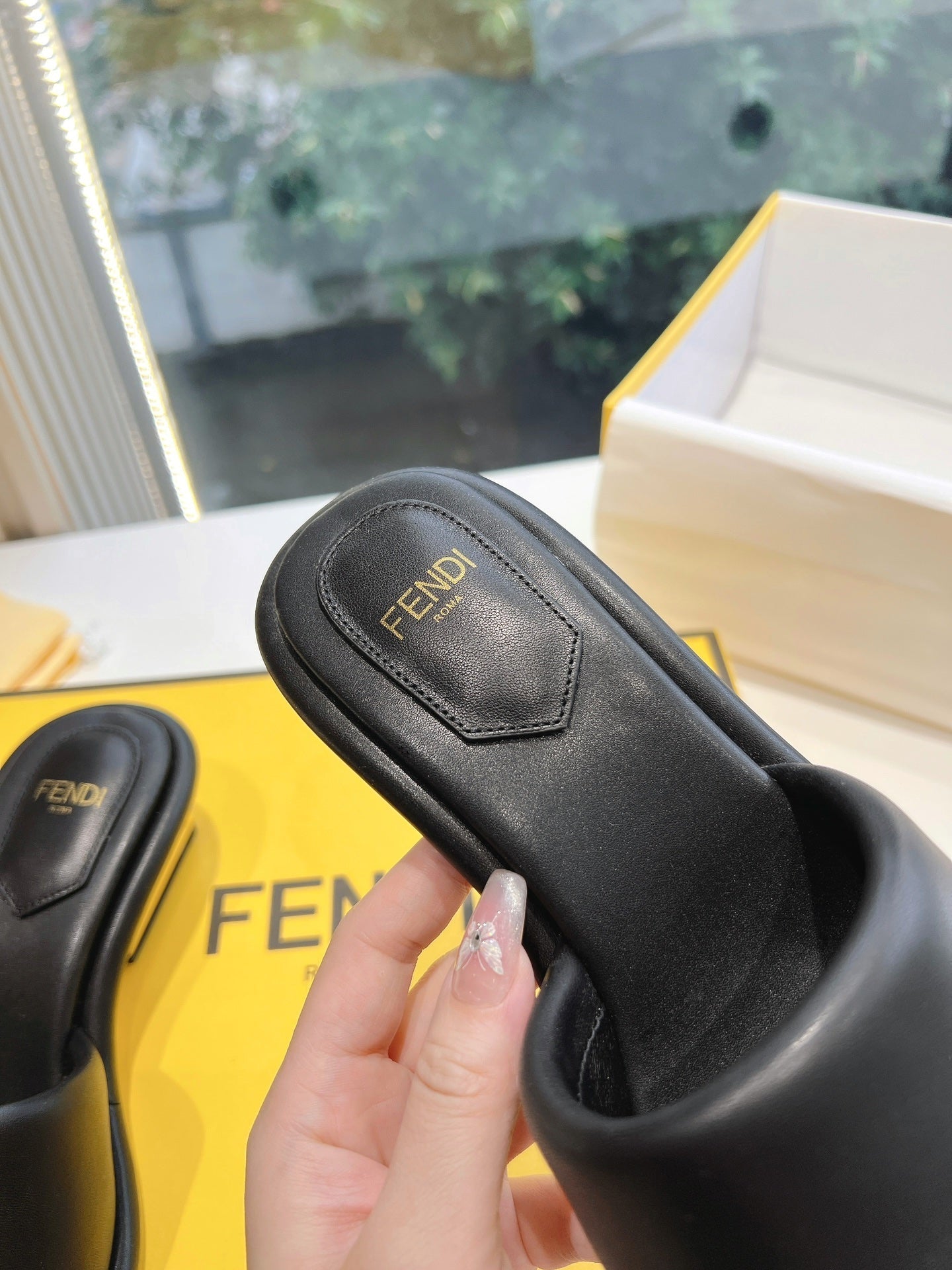 FF Baguette Slides Women 45 Nappa Leather Black