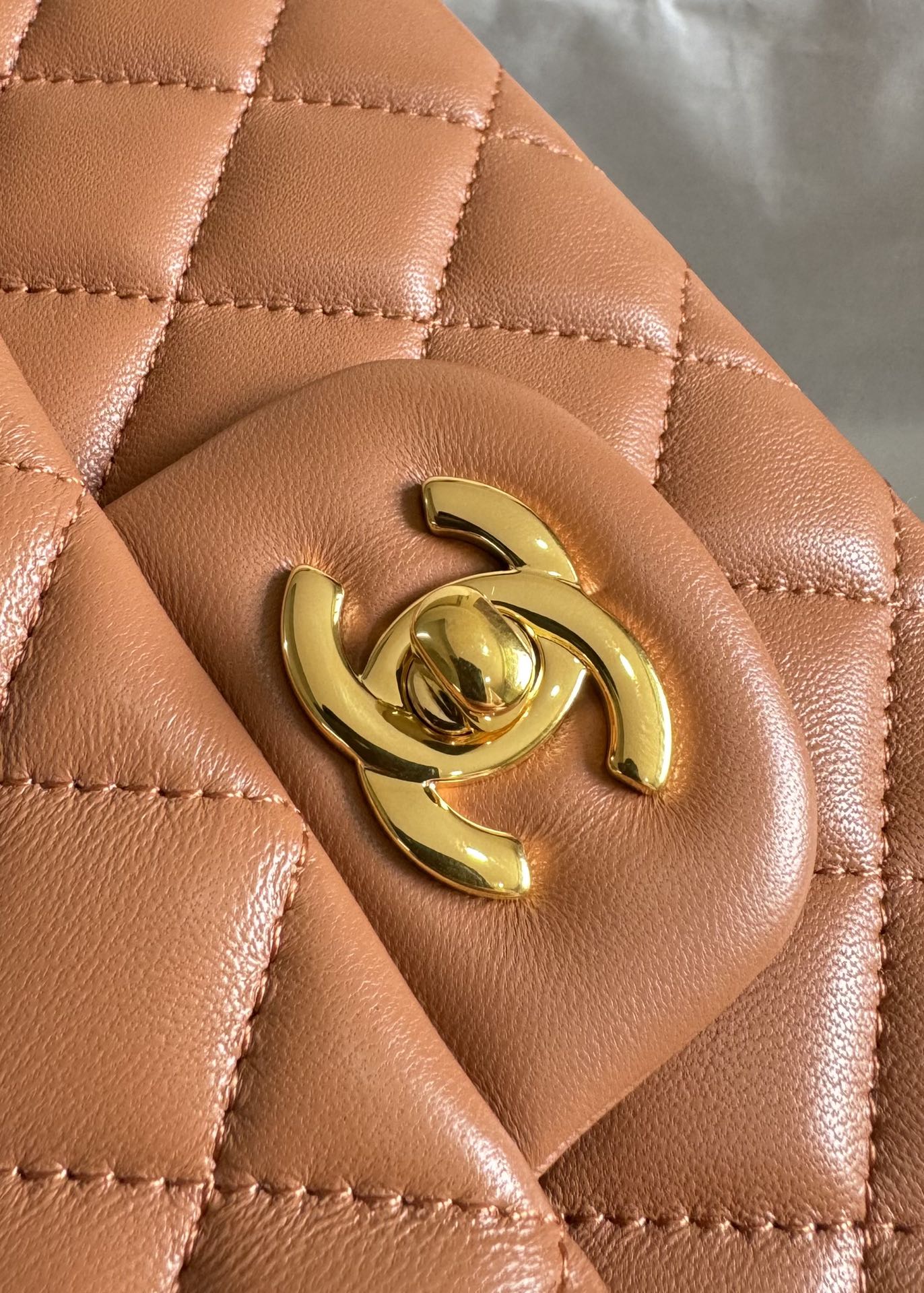 flap bag medium 25 brown lambskin gold hardware