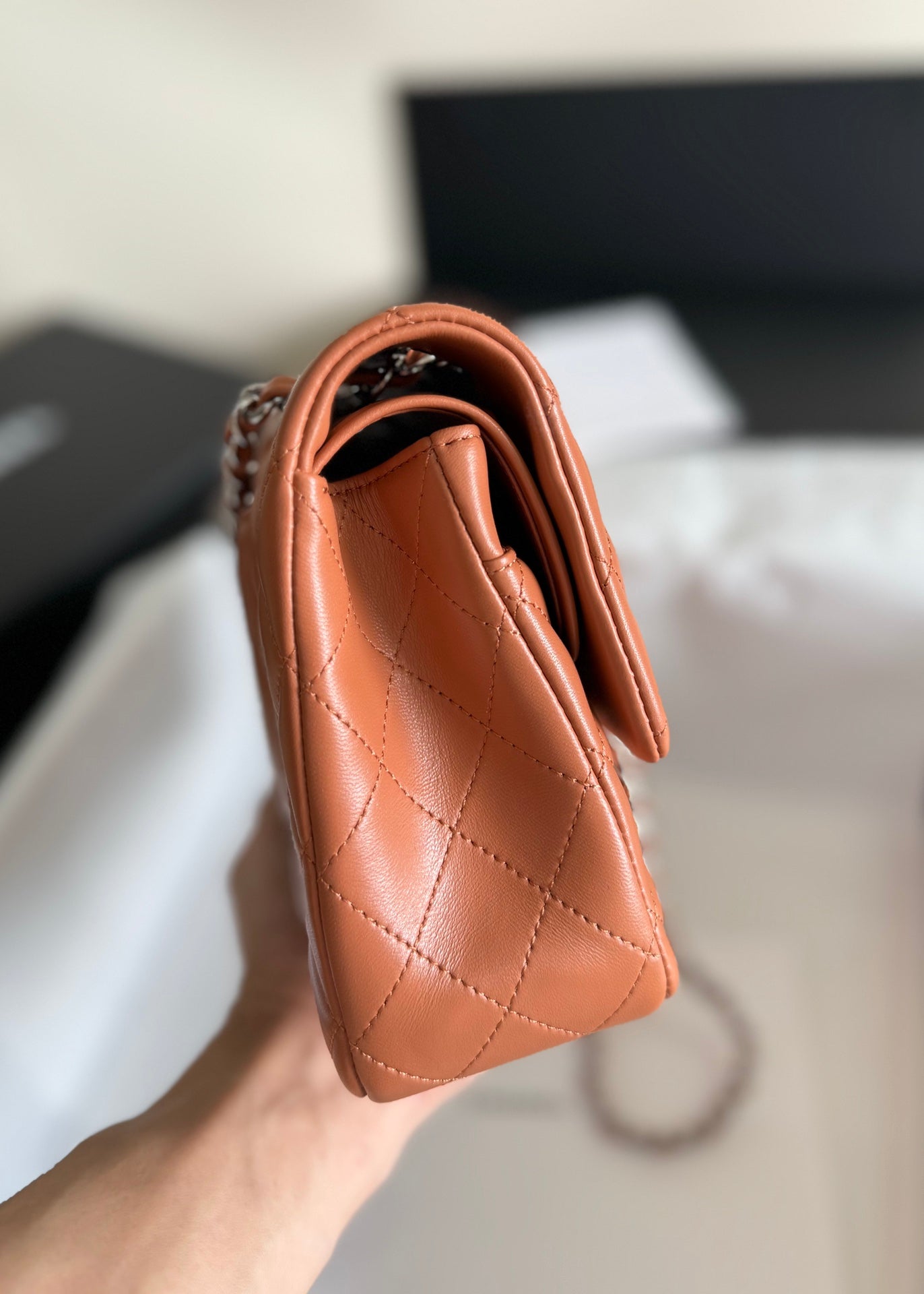 flap bag medium 25 brown lambskin silver hardware
