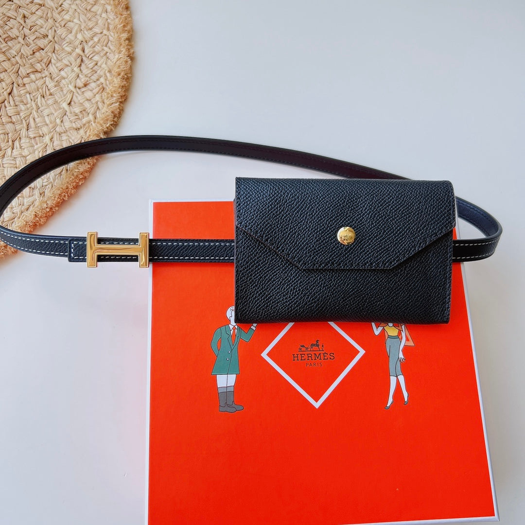 focus belt 13mm with kelly pocket black epsom gold buckle