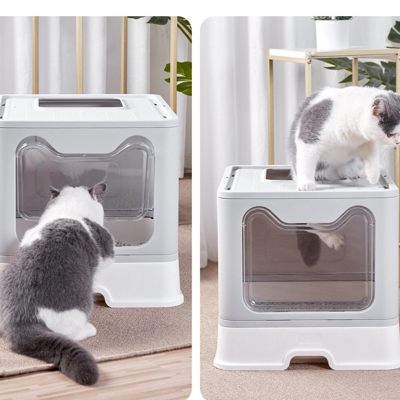 Soyez prêt à dire adieu aux problèmes de litière éparpillée et aux odeurs indésirables grâce à la fonctionnalité astucieuse de STONY. Son design pliable pratique vous permet de le ranger facilement lorsque vous ne l'utilisez pas, tout en offrant un espace spacieux pour que votre chat puisse se sentir à l'aise pendant ses moments intimes.